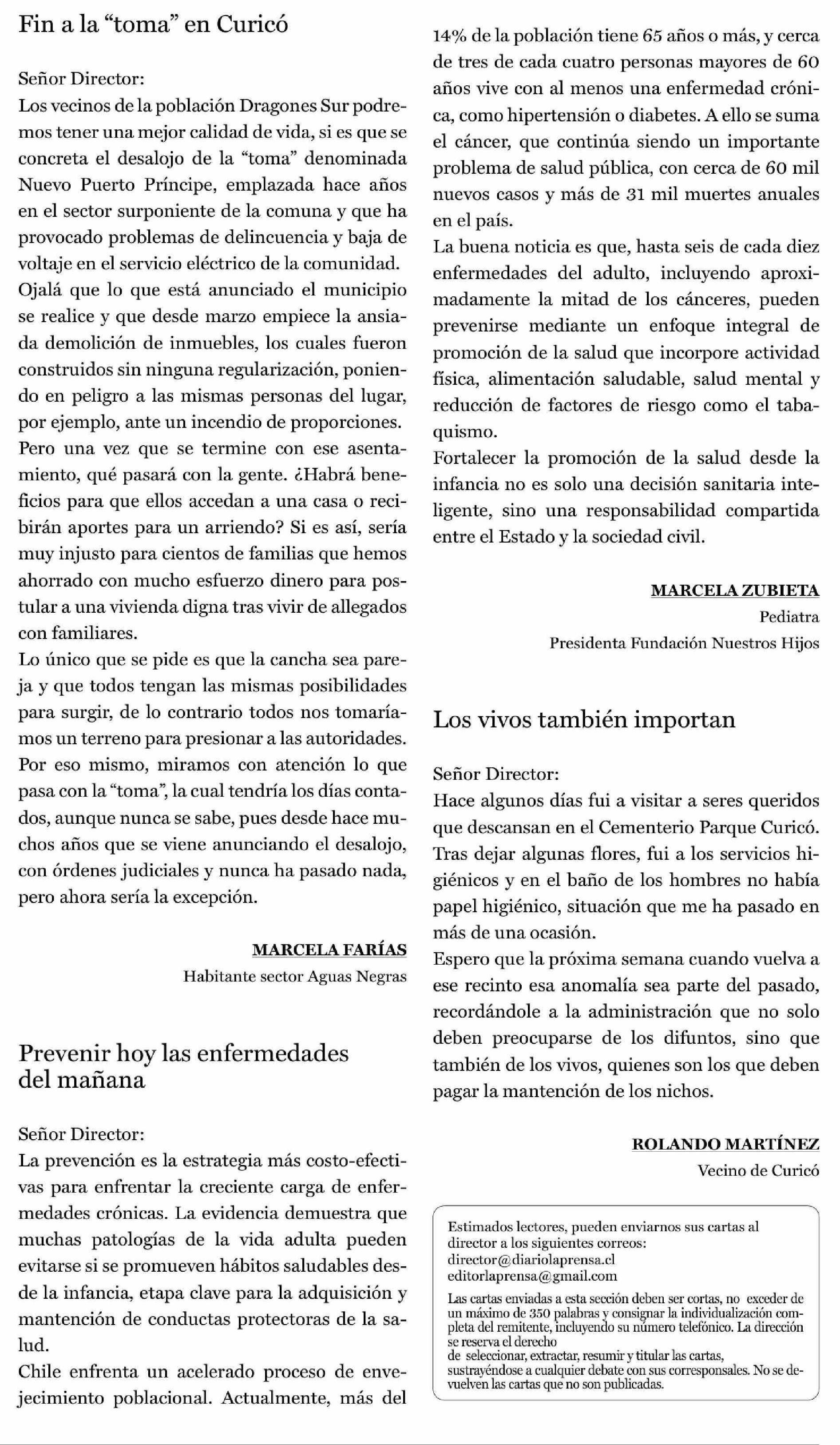 Cartas: Prevenir hoy las enfermedades del mañana 04-02-2026 La Prensa de Curicó |