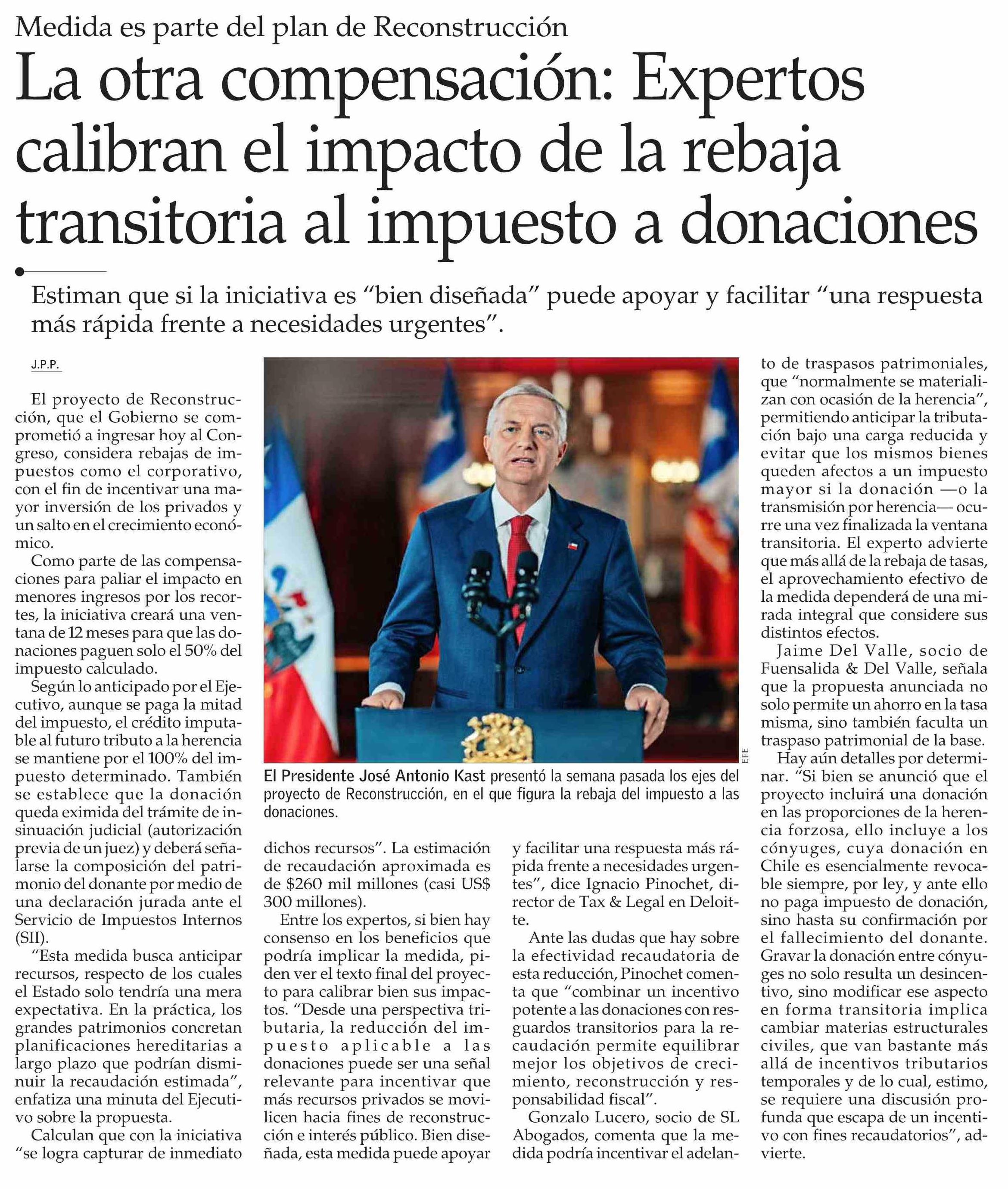 Título: La otra compensación: Expertos calibran el impacto de la rebaja transitoria al impuesto a donaciones
