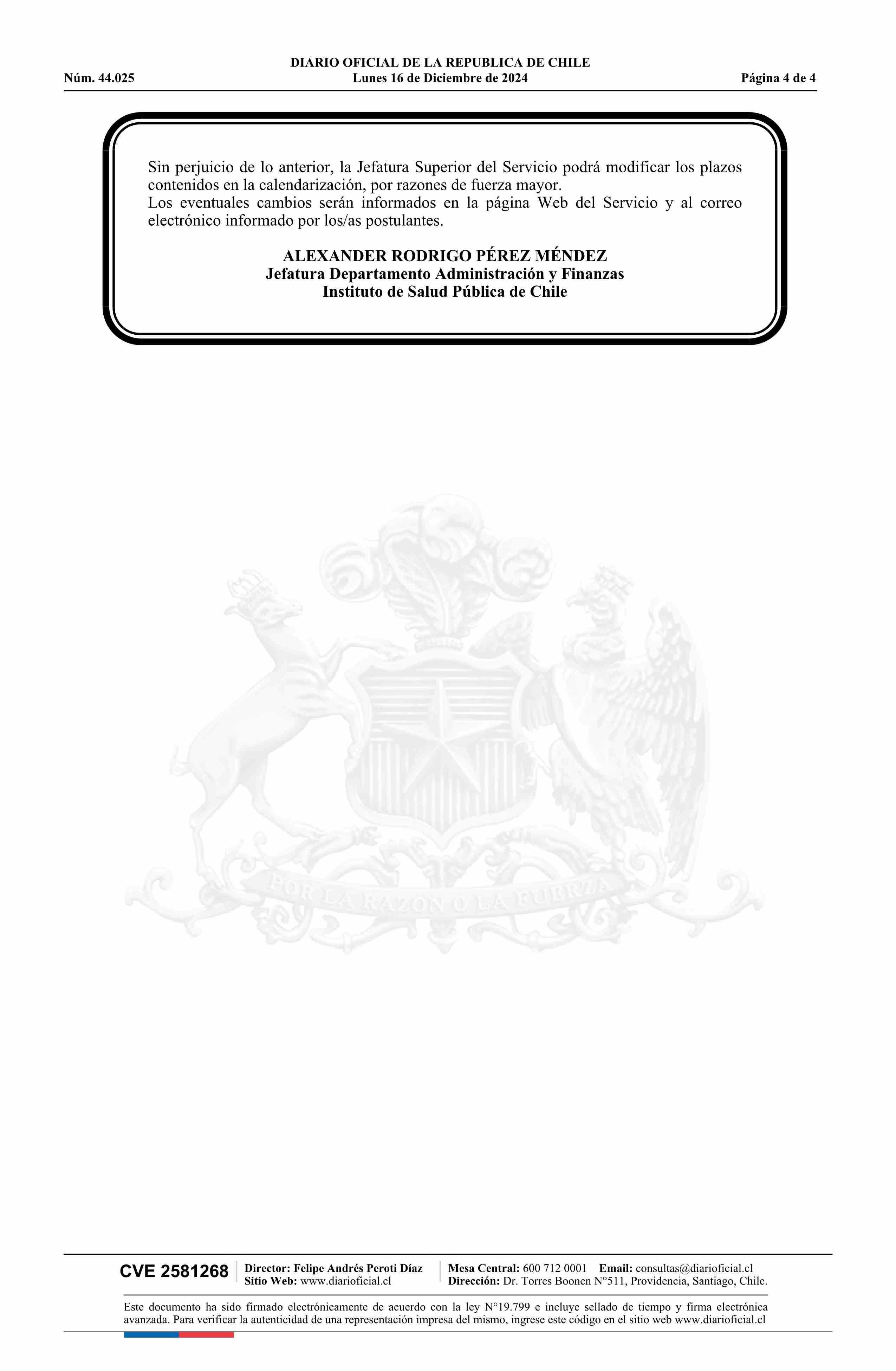 | Fecha: | 16-12-2024 | Sector: | Aviso Licitaciones | Región: | Región Metropolitana de Santiago |