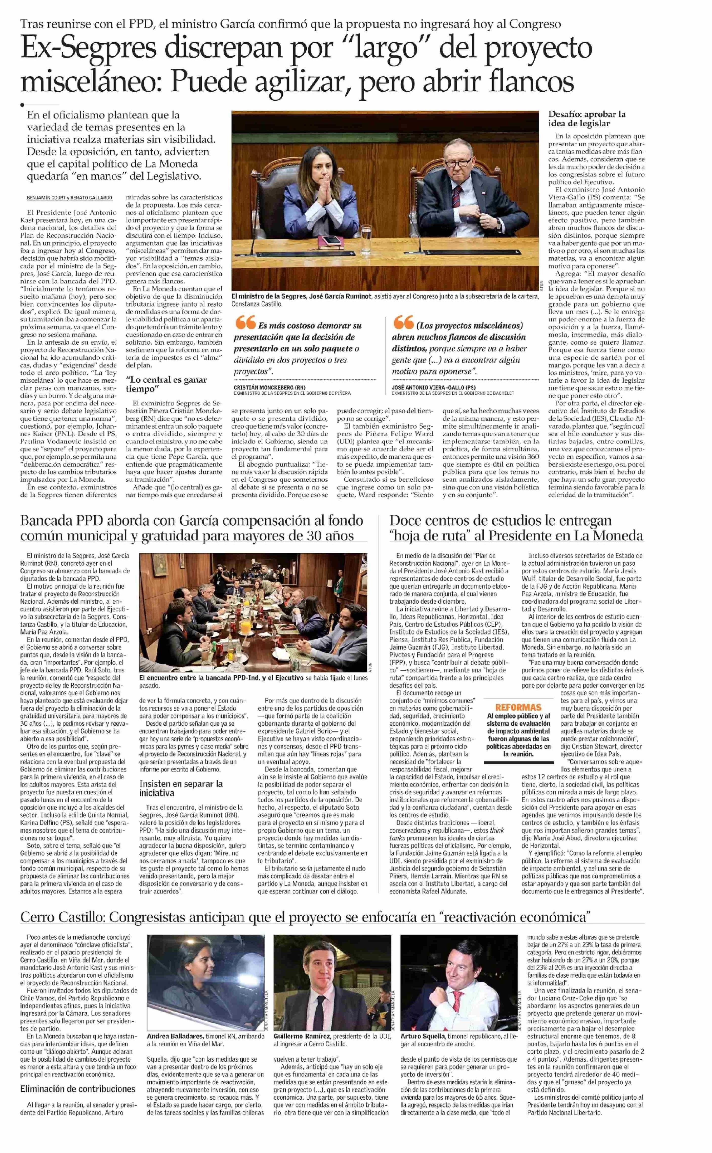 Título: Ex-Segpres discrepan por “largo” del proyecto misceláneo: Puede agilizar, pero abrir flancos