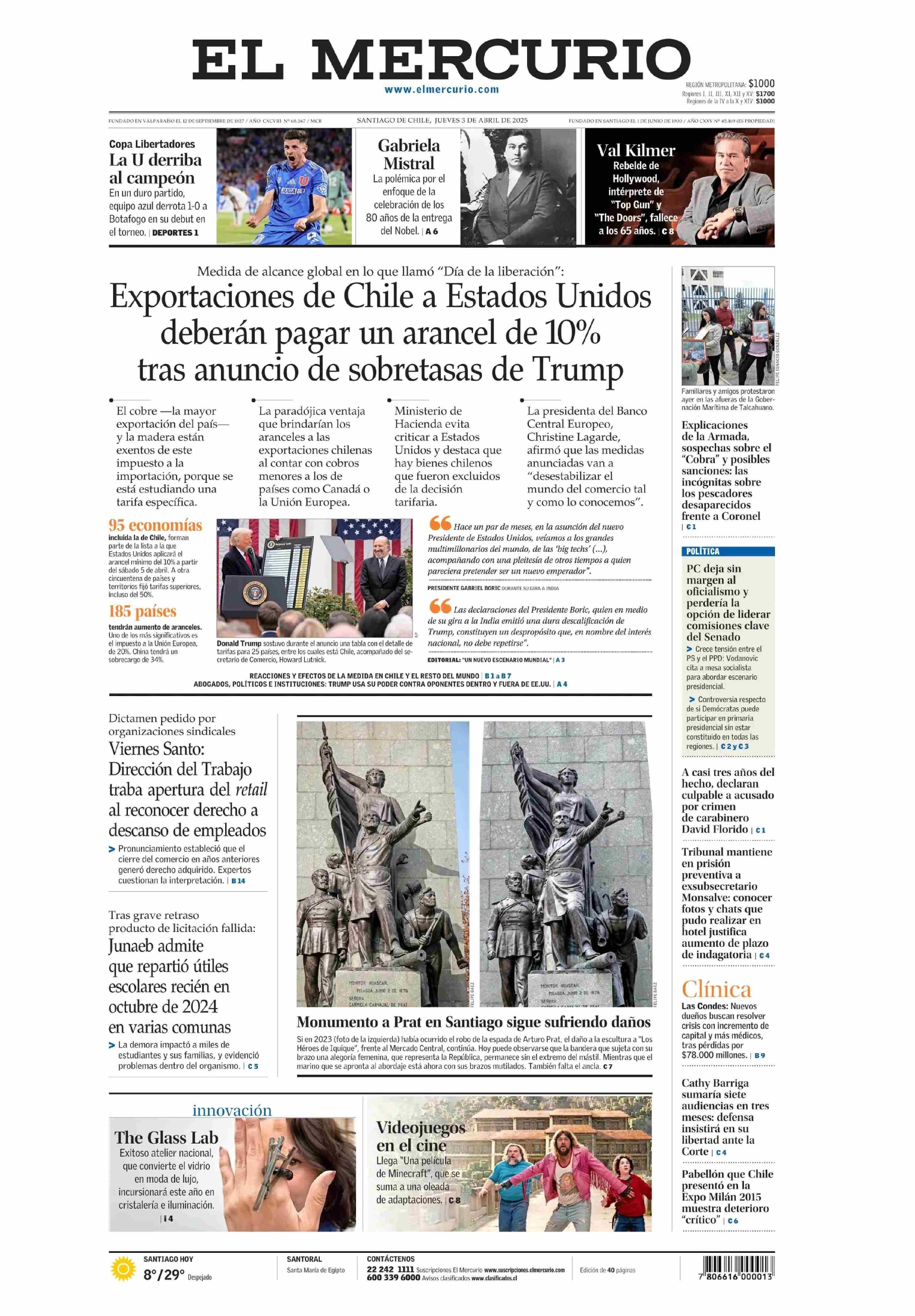 PORTADA EL MERCURIO (A SEGUNDA EDICIÓN) - CHILE 03-04-2025 El Mercurio |