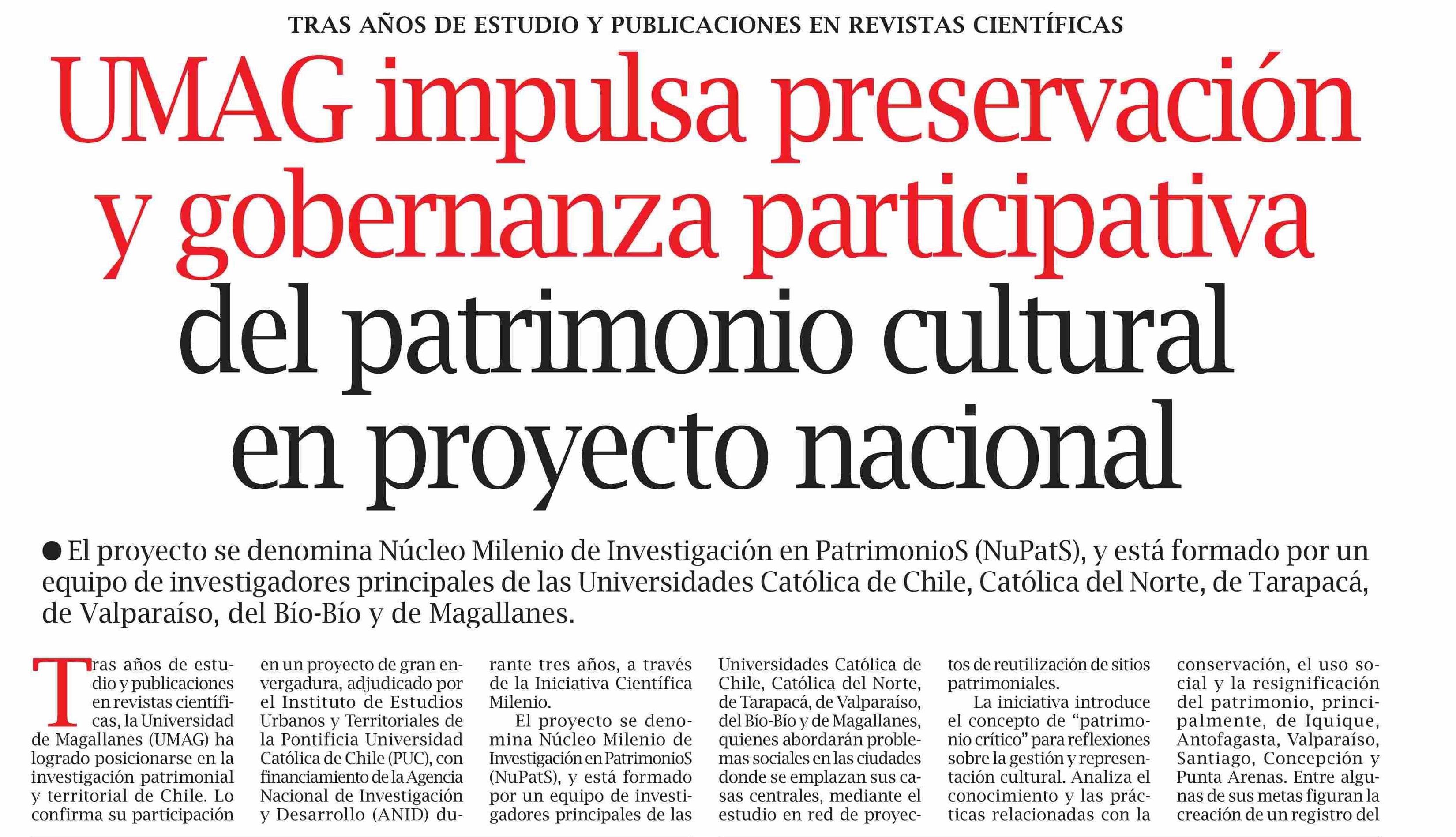 | Título: | UMAG impulsa preservación y gobernanza participativa del patrimonio cultural en proyecto nacional |