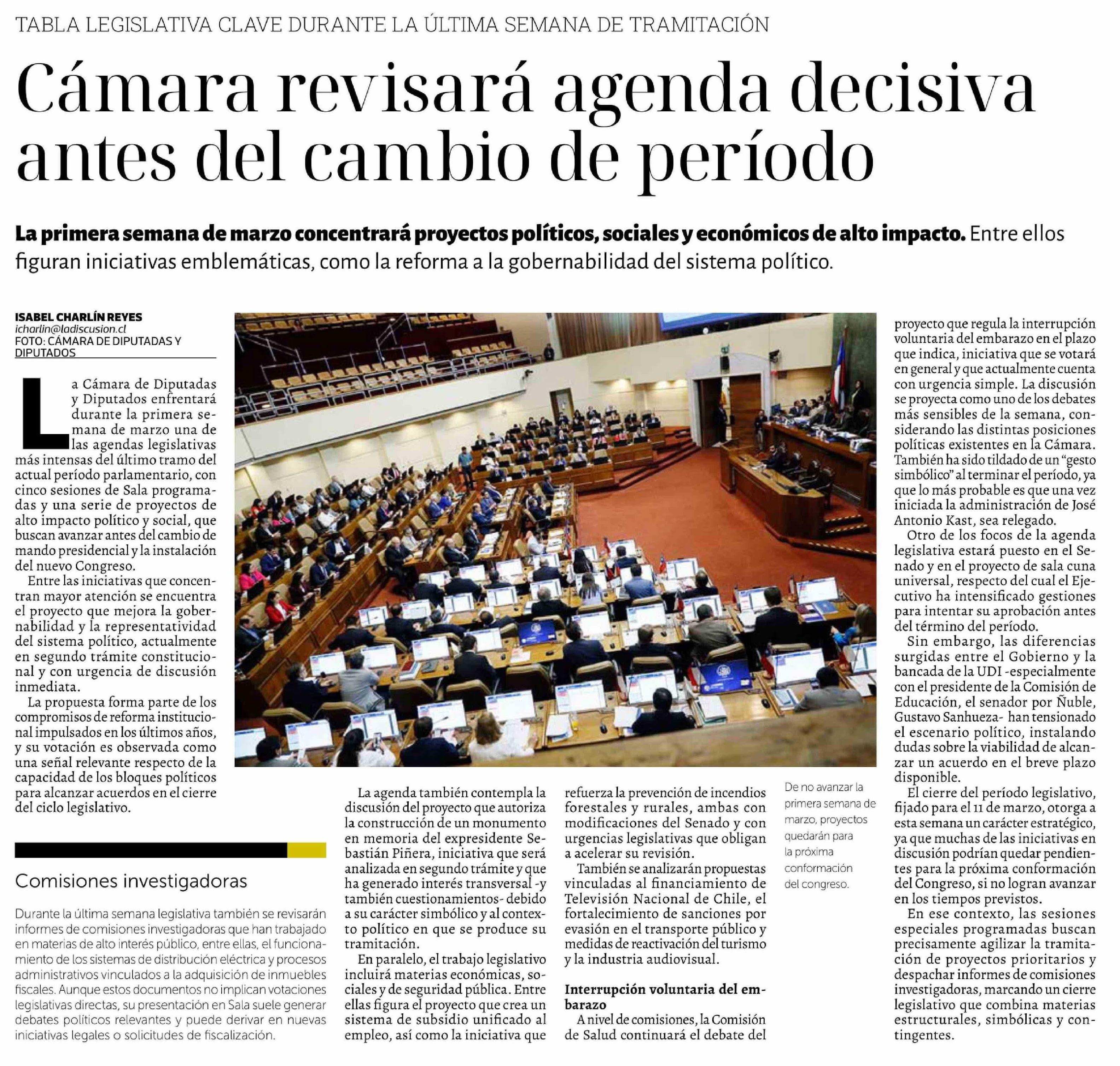 Título: Cámara revisará agenda decisiva antes del cambio de período