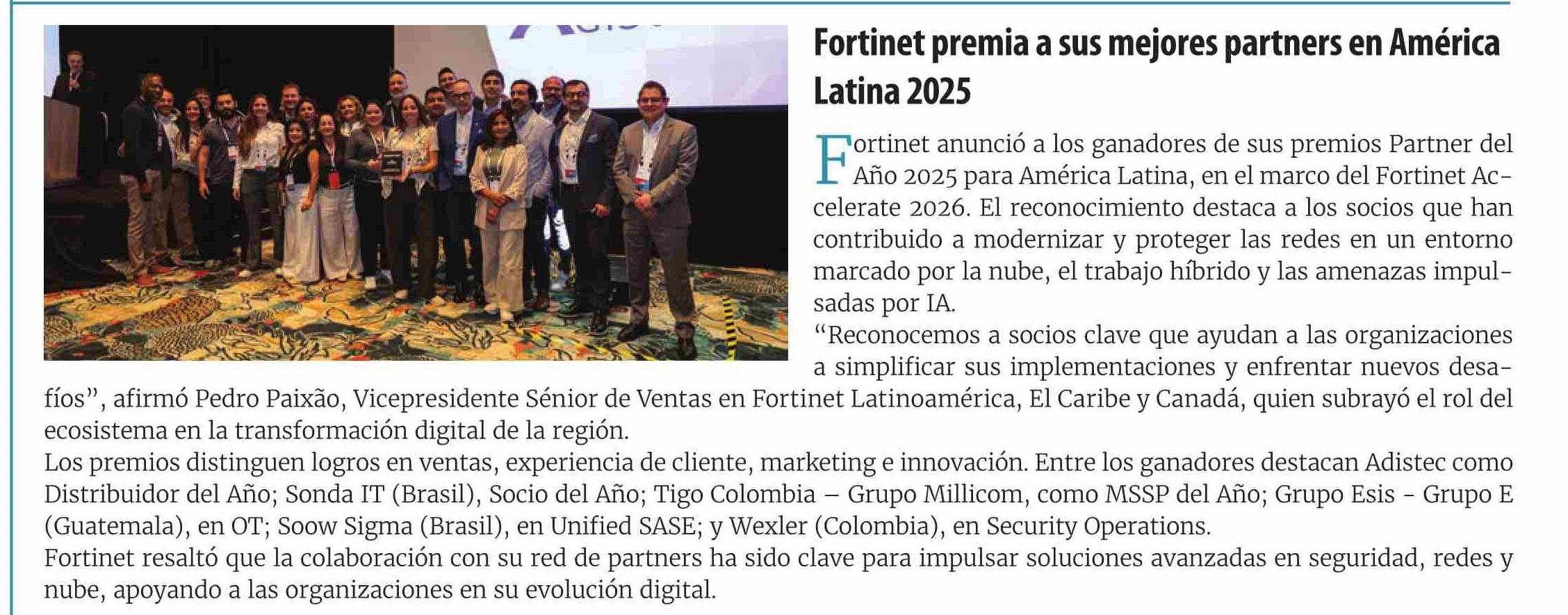 Fortinet premia a sus mejores partners en América 30-03-2026 Revista Channel News |
