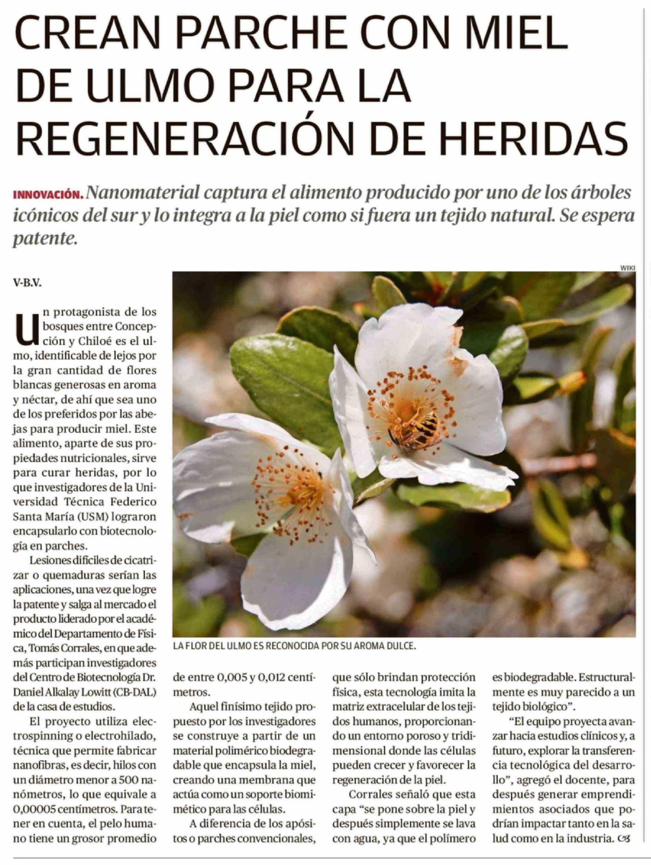 Título: CREAN PARCHE CON MIEL DE ULMO PARA LA REGENERACIÓN DE HERIDAS