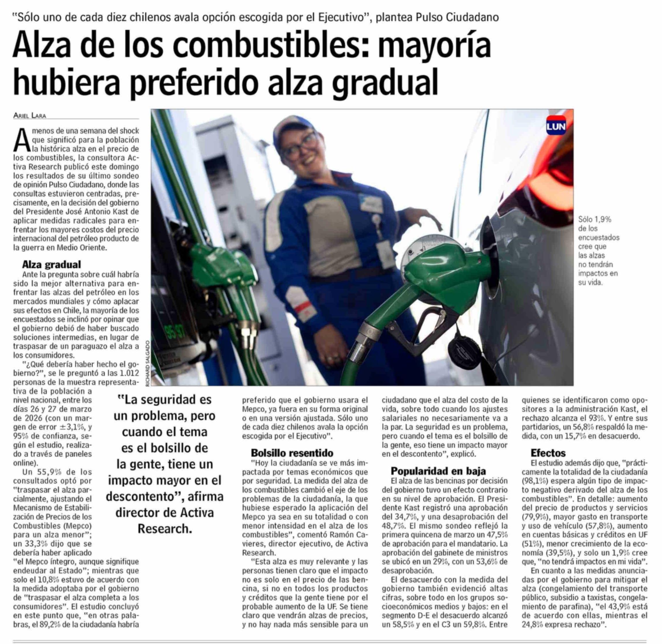 Alza de los combustibles: mayoría hubiera preferido alza gradual 30-03-2026 Las Últimas Noticias |