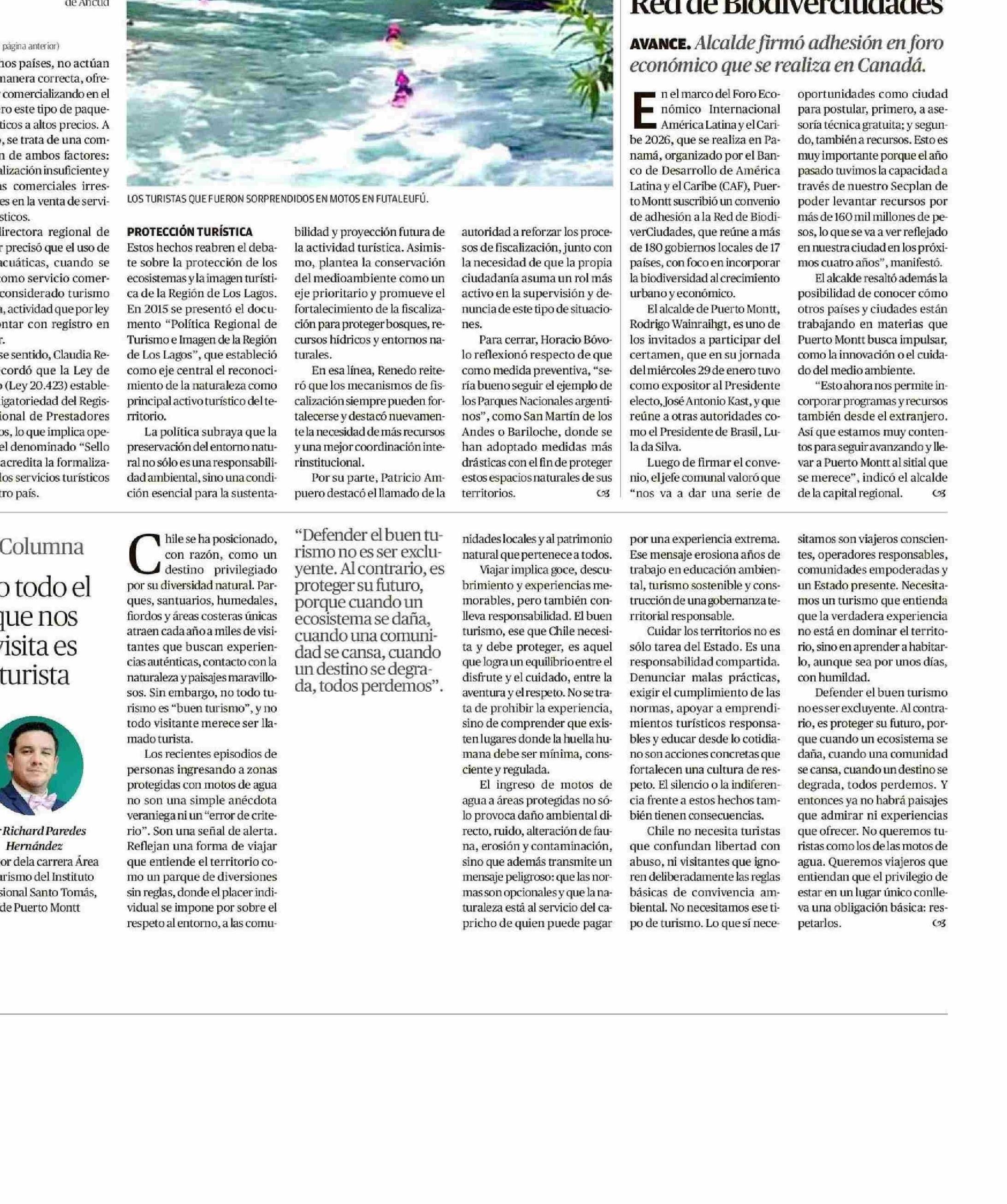 Llaman a denunciar y fortalecer la fiscalización a turistas foráneos 31-01-2026 El Llanquihue |