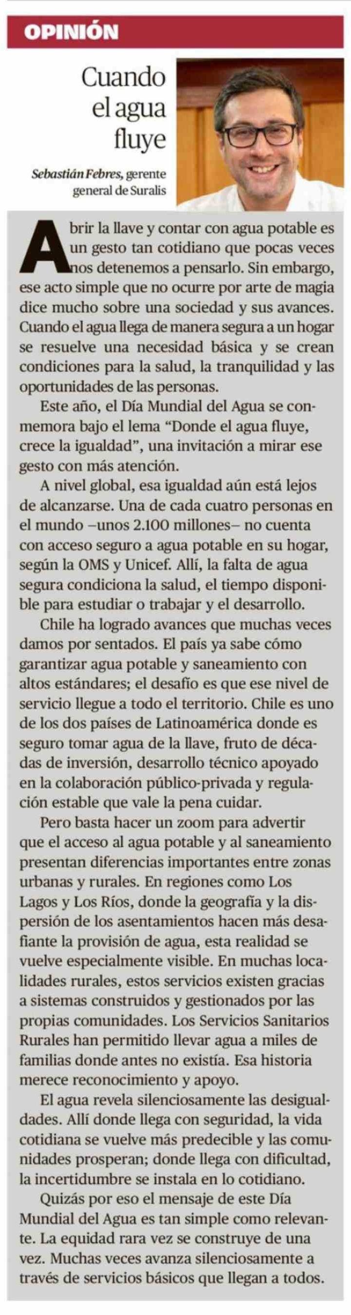 Columnas de Opinión: Cuando el agua fluye 22-03-2026 El Austral de Osorno |