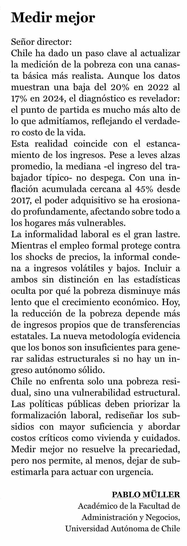 Cartas: Medir mejor 16-01-2026 La Prensa de Curicó |