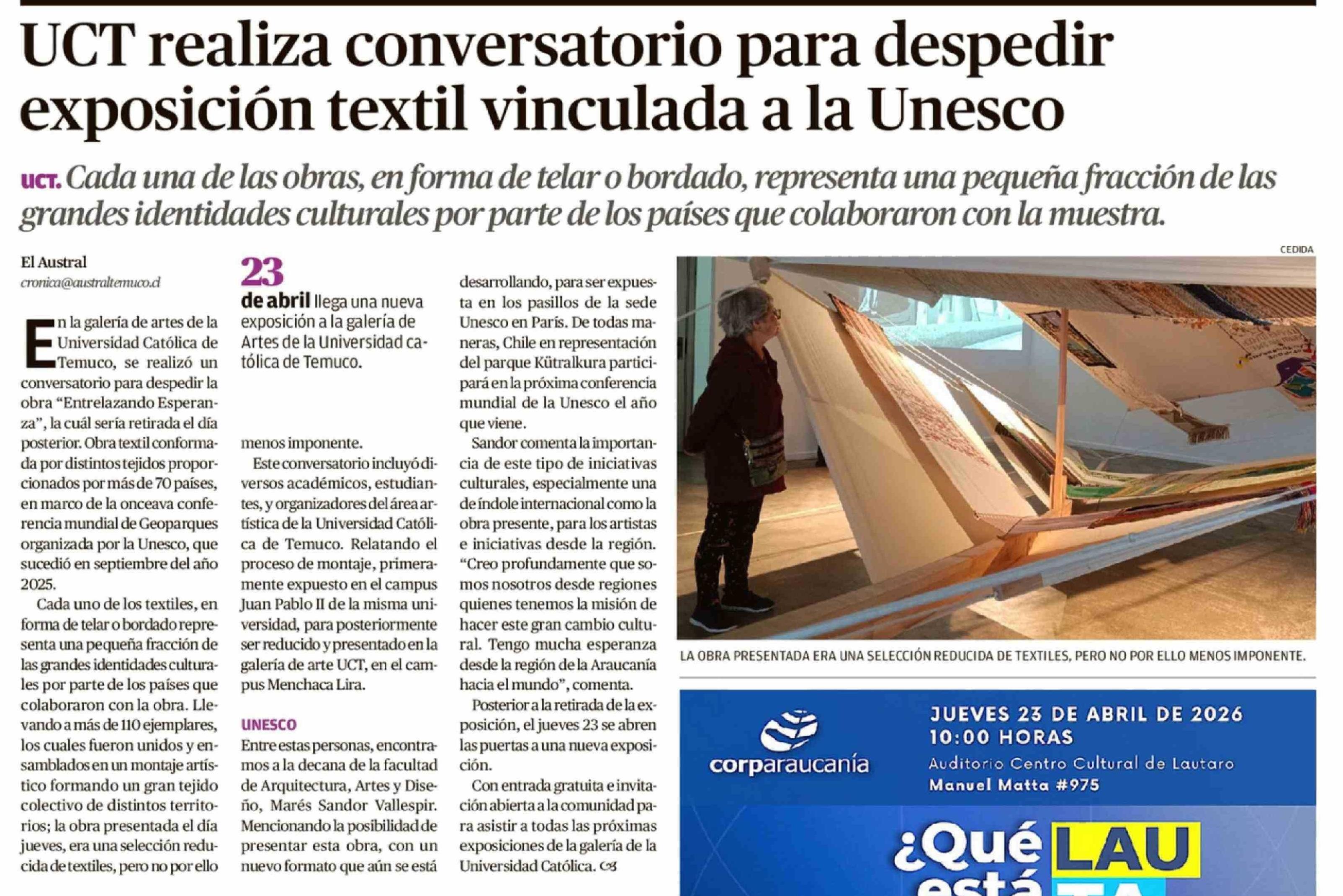 Título: UCT realiza conversatorio para despedir exposición textil vinculada a la Unesco