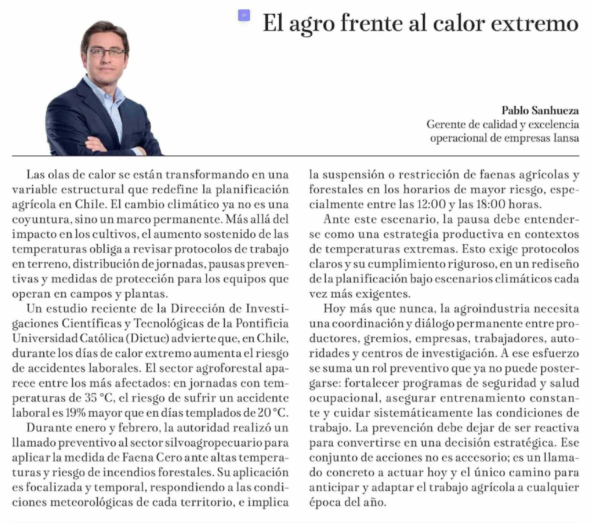 Título: Columnas de Opinión: El agro frente al calor extremo