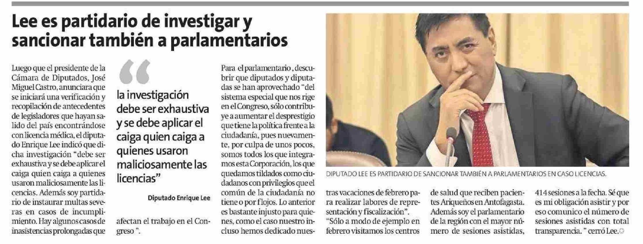 Lee es partidario de investigar y sancionar también a parlamentarios 13-06-2025 La Estrella de Arica |
