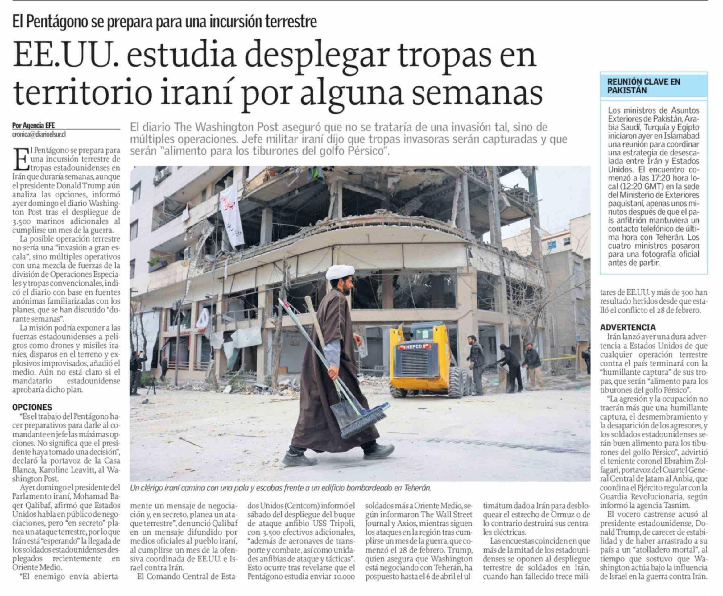 EE.UU. estudia desplegar tropas en territorio iraní por alguna semanas 30-03-2026 El Sur |