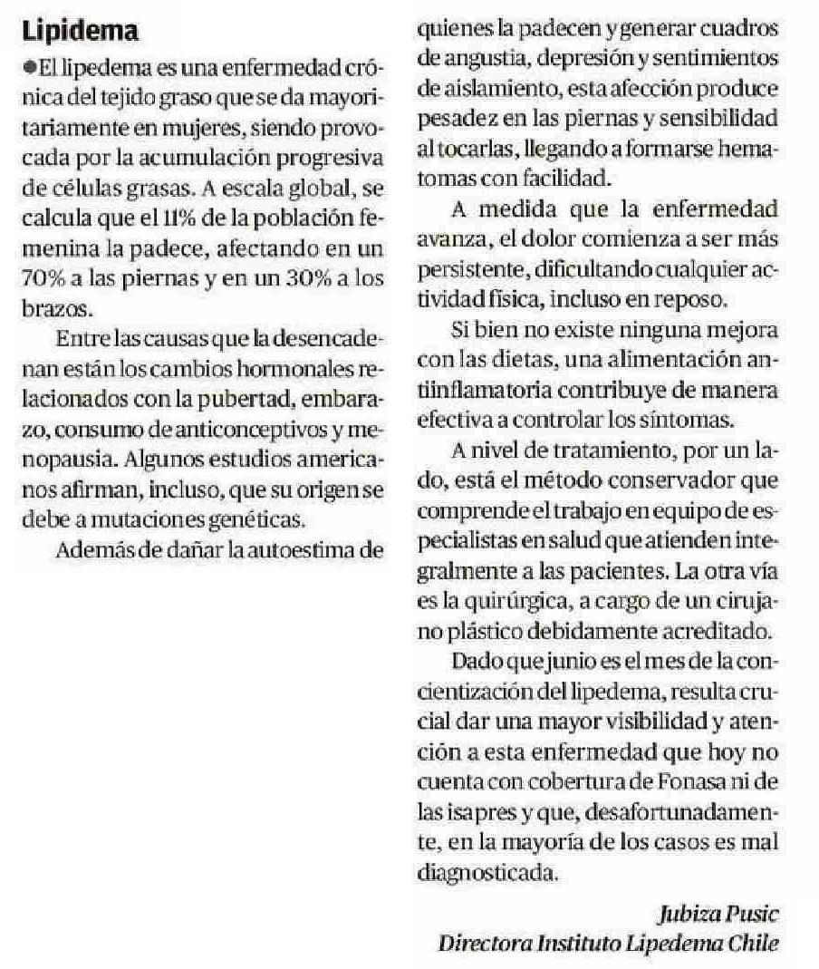Lipidema 05-06-2025 El Mercurio de Valparaíso |