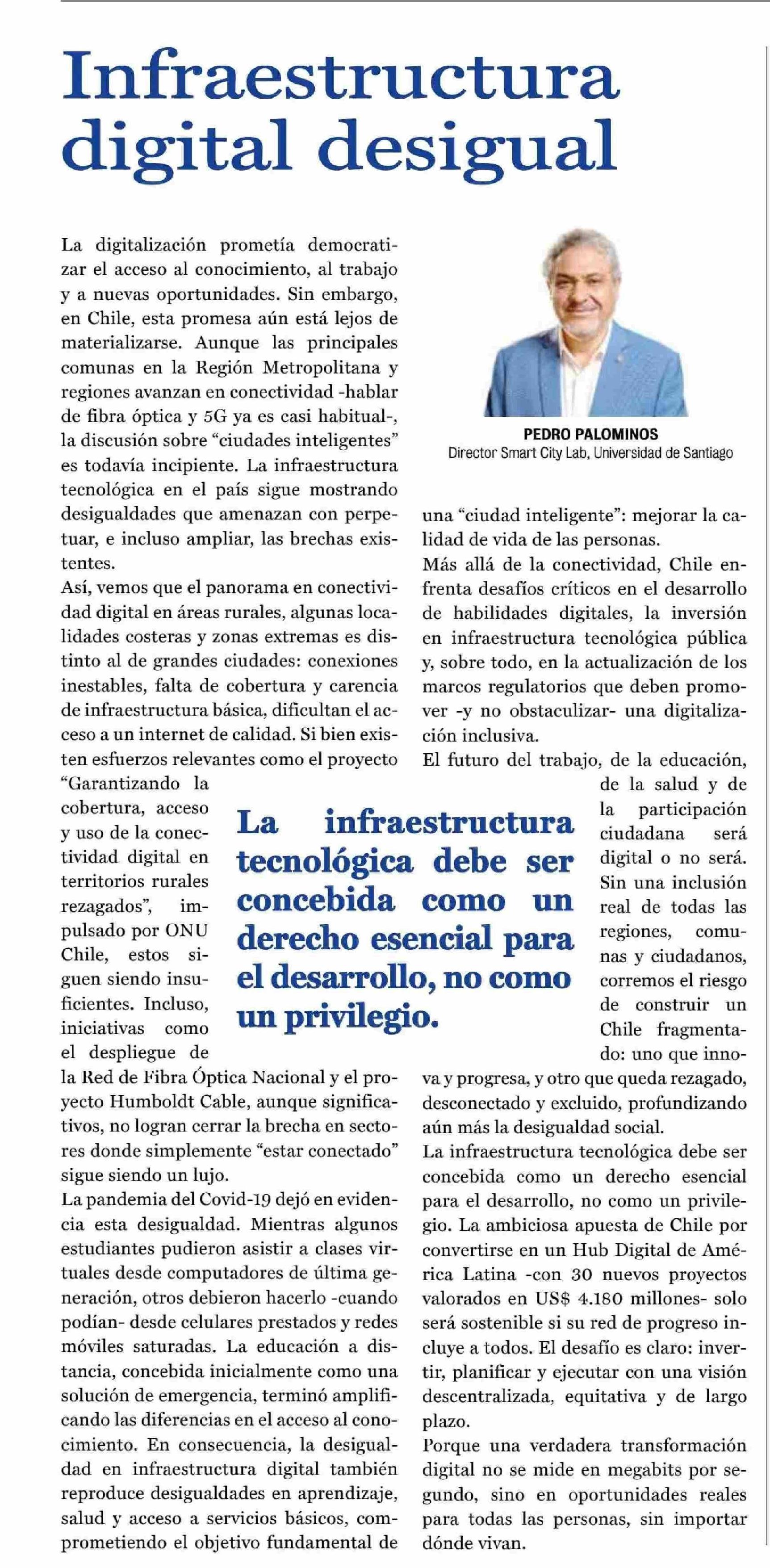 COLUMNAS DE OPINIÓN: Infraestructura digital desigual 03-05-2025 La Prensa de Curicó |