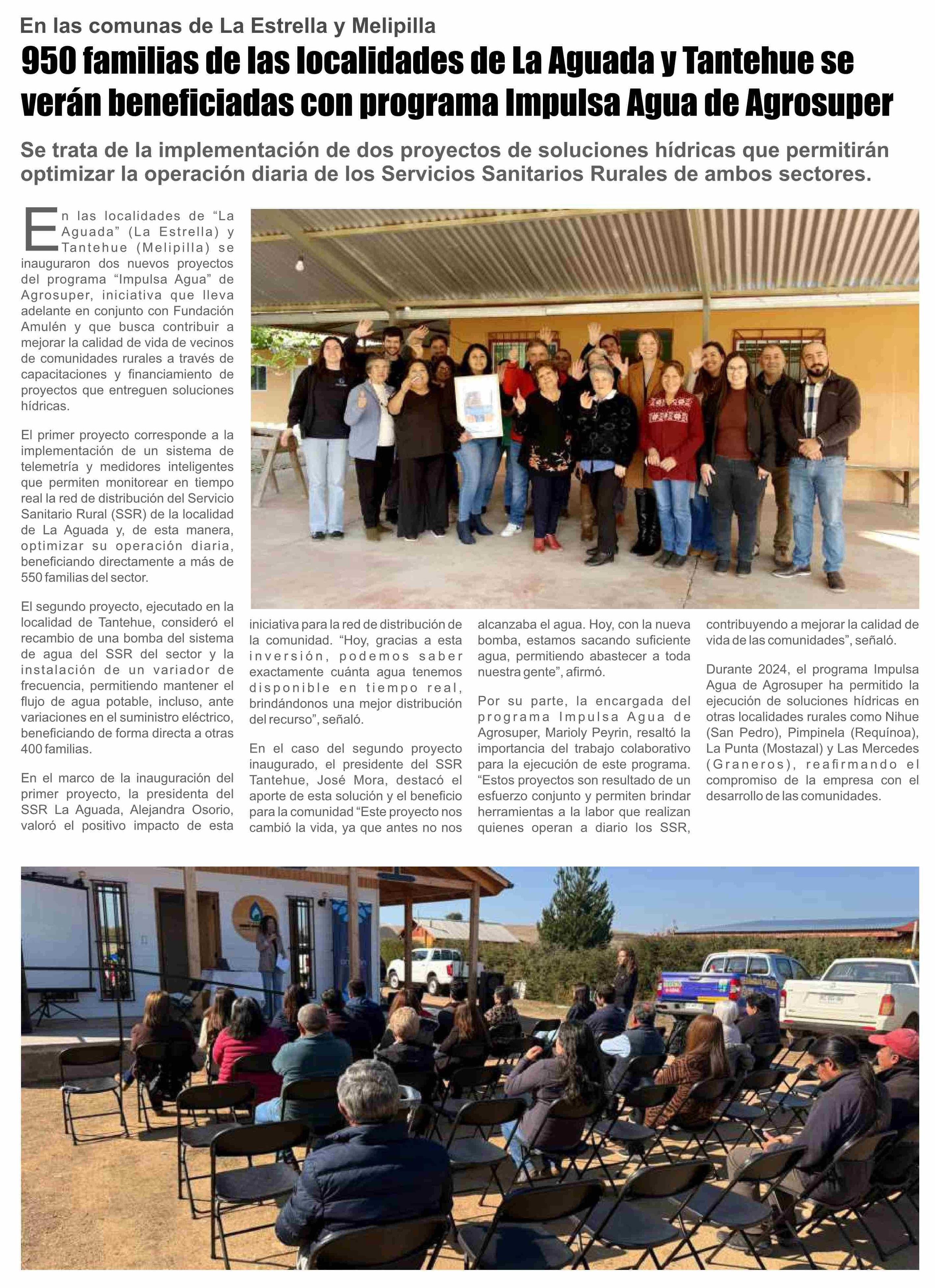 950 familias de las localidades de La Aguada y Tantehue se verán beneficiadas con programa Impulsa Agua de Agrosuper 30-05-2025 El Labrador |