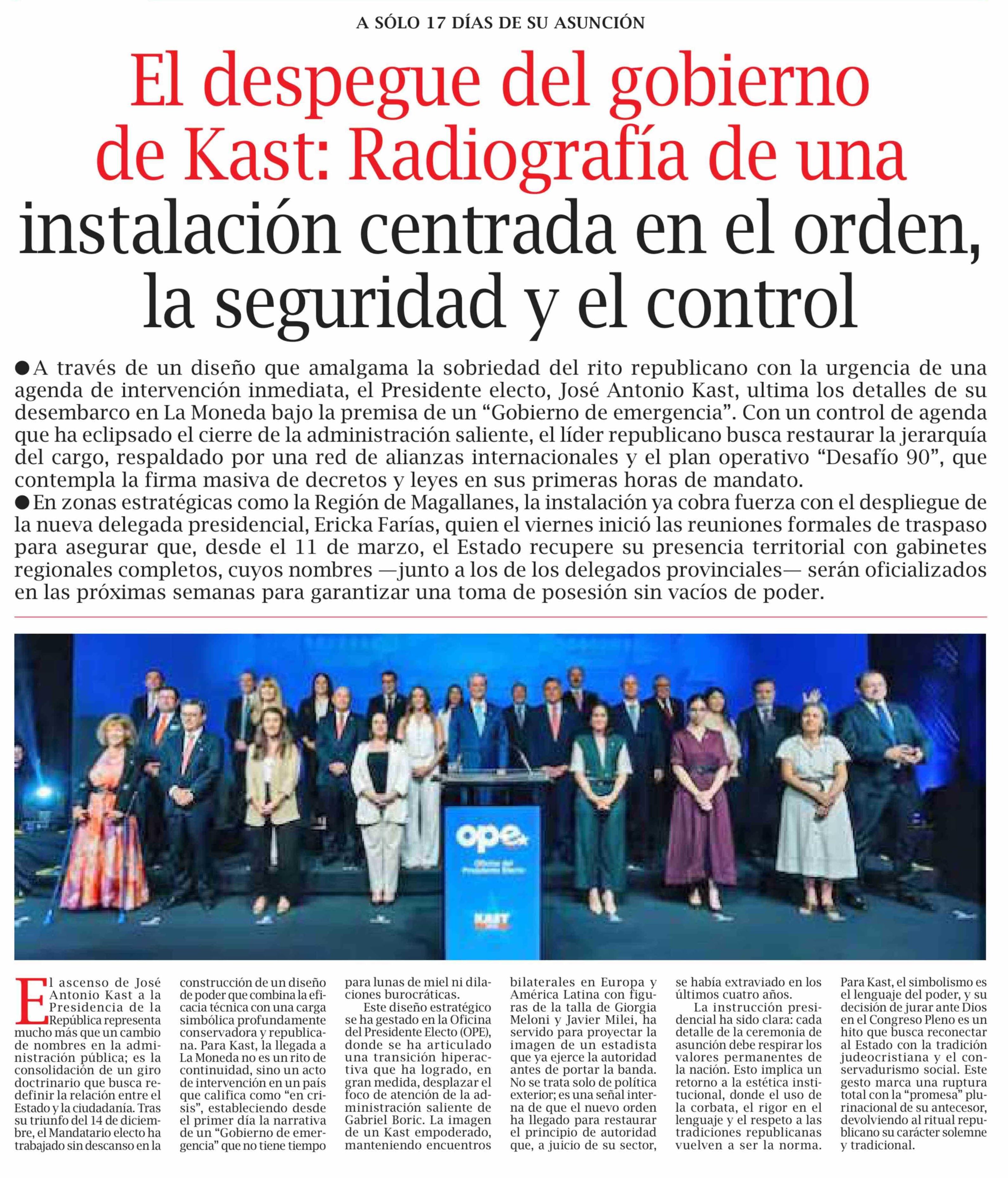 Título: El despegue del gobierno de Kast: Radiografía de una instalación centrada en el orden, la seguridad y el control