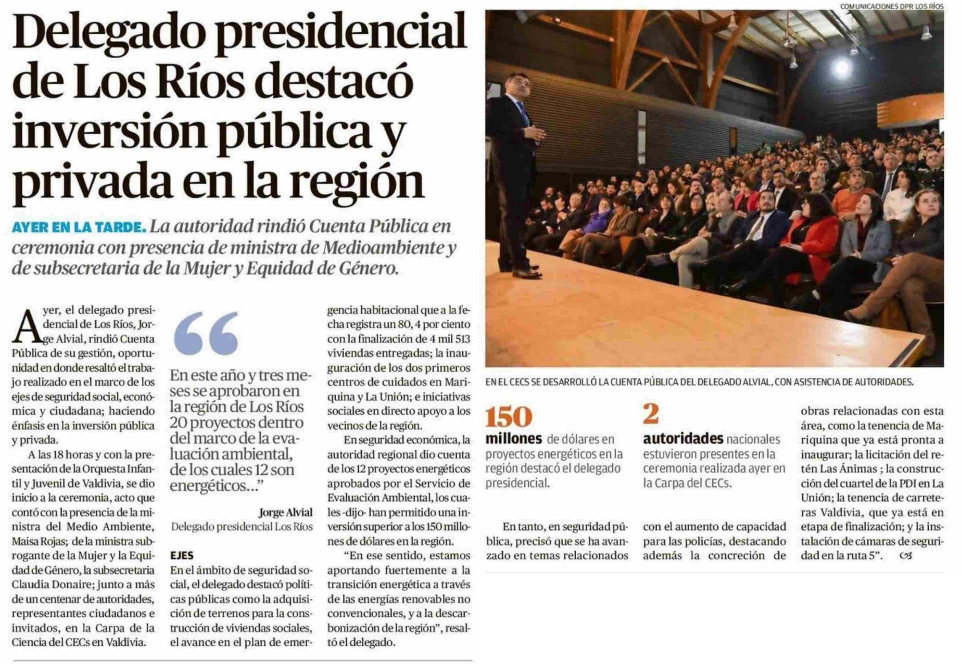 Delegado presidencial de Los Ríos destacó inversión pública y privada en la región 06-06-2025 Diario Austral Región de Los Ríos |