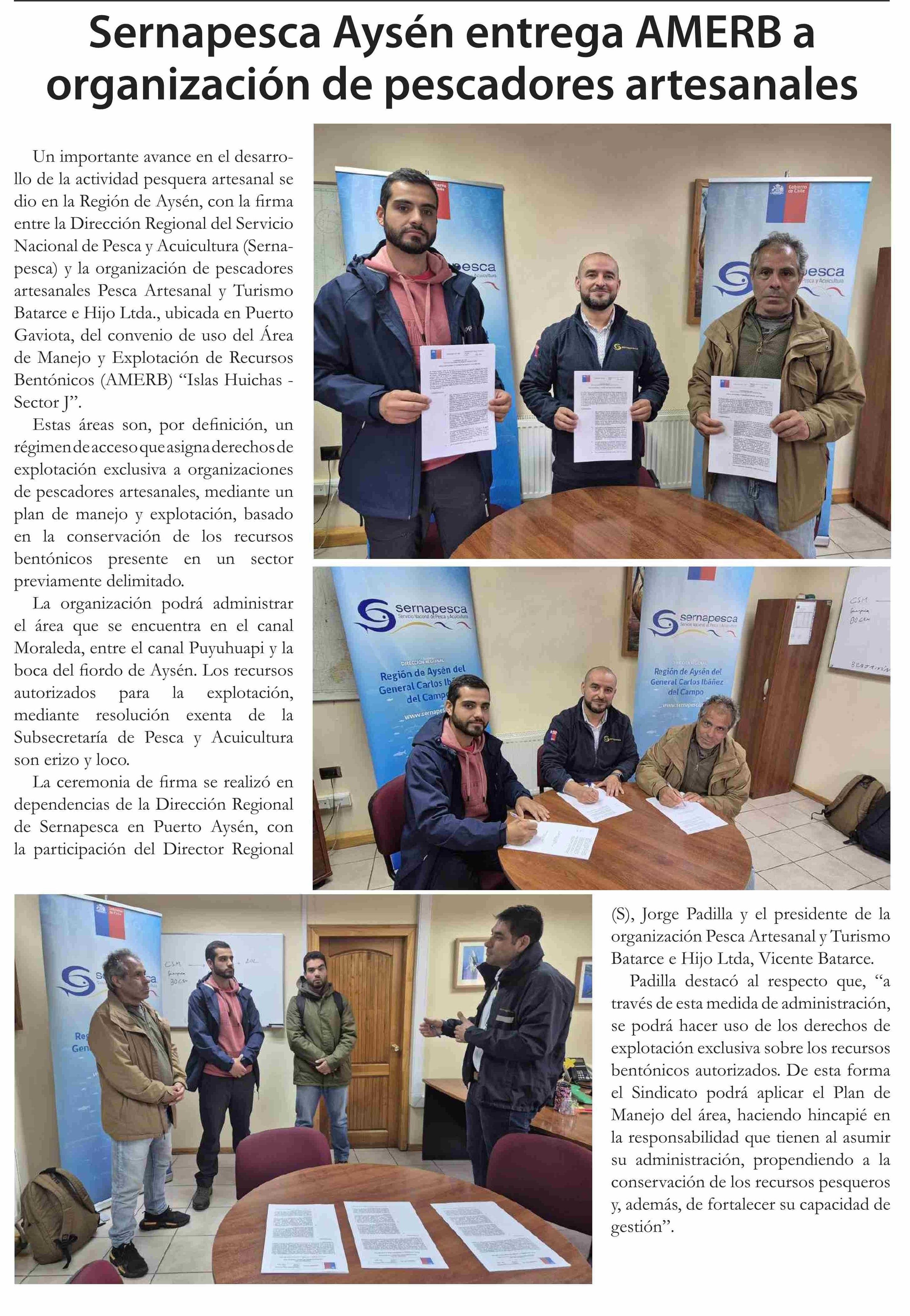Sernapesca Aysén entrega AMERB a organización de pescadores artesanales 19-01-2026 El Divisadero |