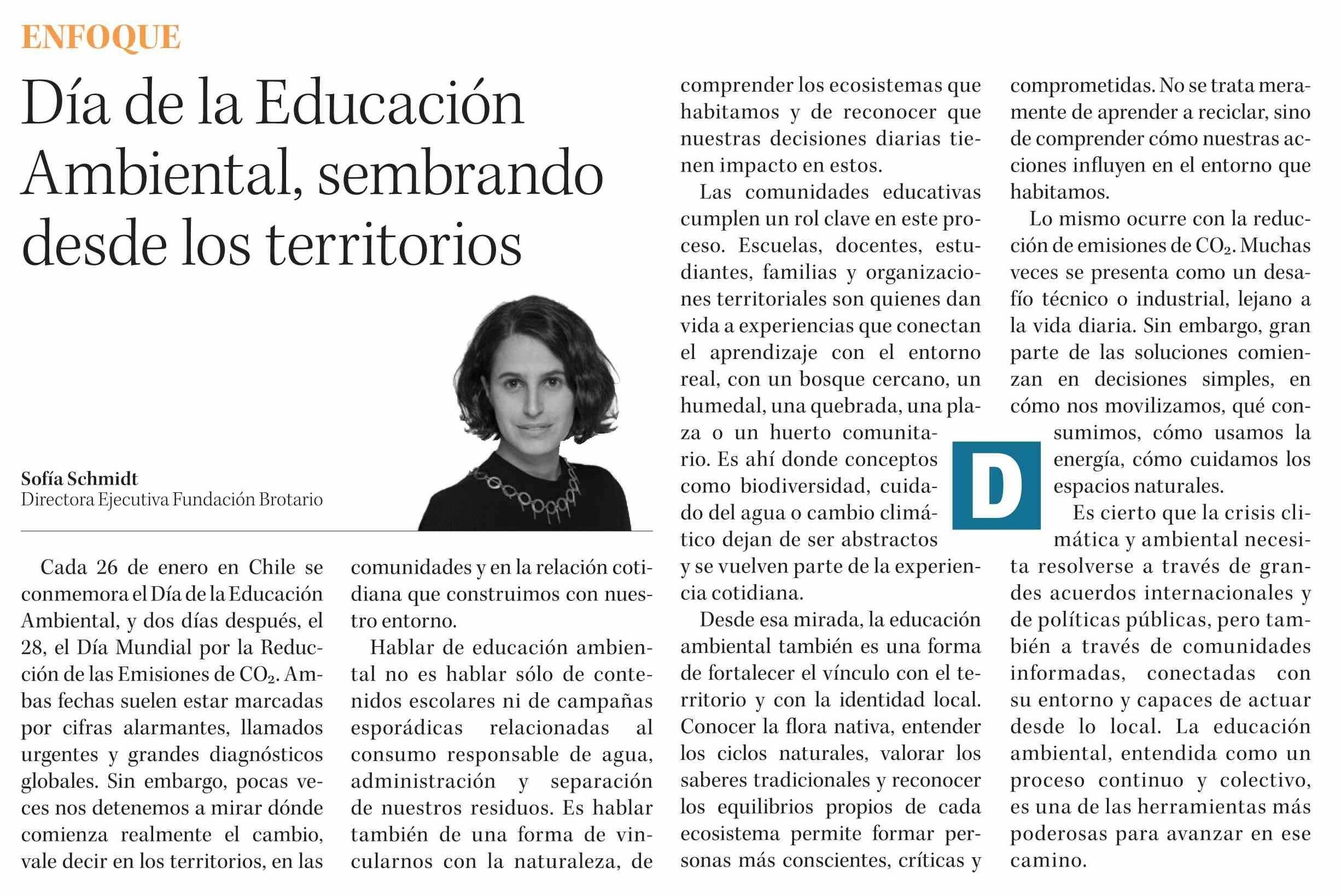 Columnas de Opinión: Día de la Educación Ambiental, sembrando desde los territorios 22-01-2026 Diario Concepción |