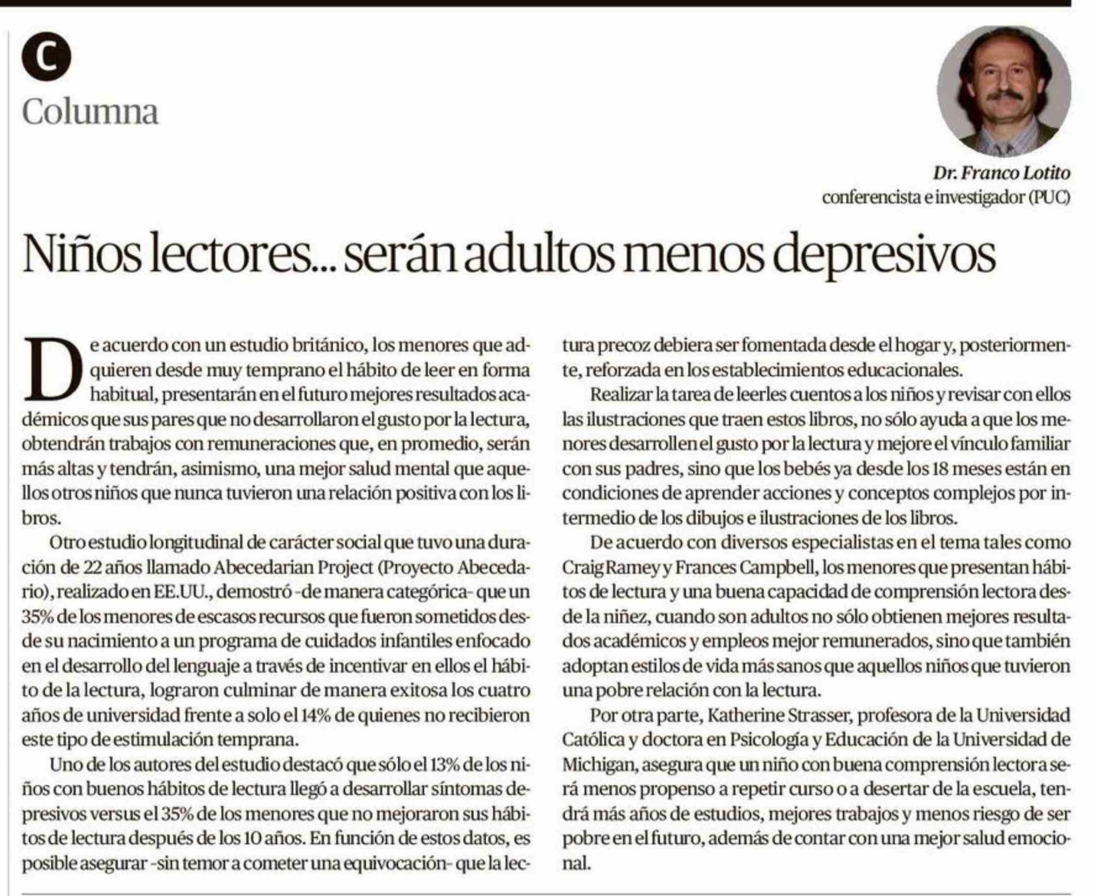 | Título: | Columnas de Opinión: Niños lectores ... serán adultos menos depresivos |