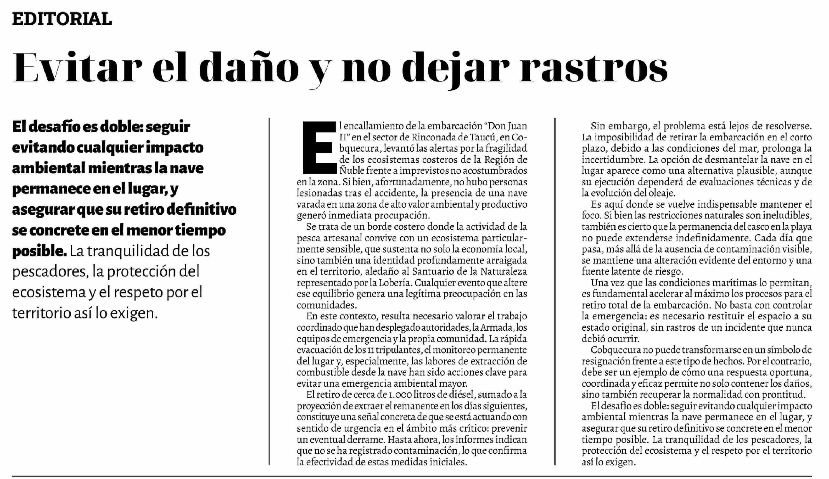 Editorial: Evitar el daño y no dejar rastros 28-04-2026 La Discusión |
