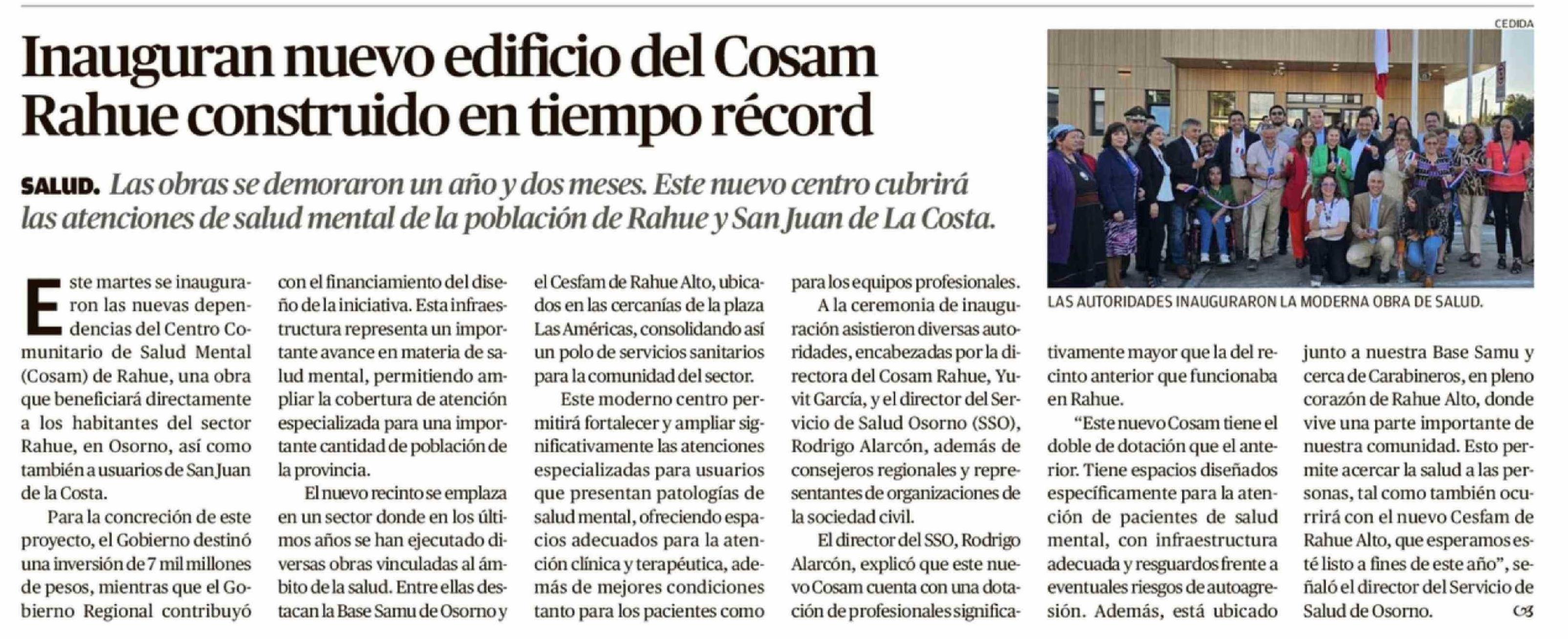 Título: Inauguran nuevo edificio del Cosam Rahue construido en tiempo récord