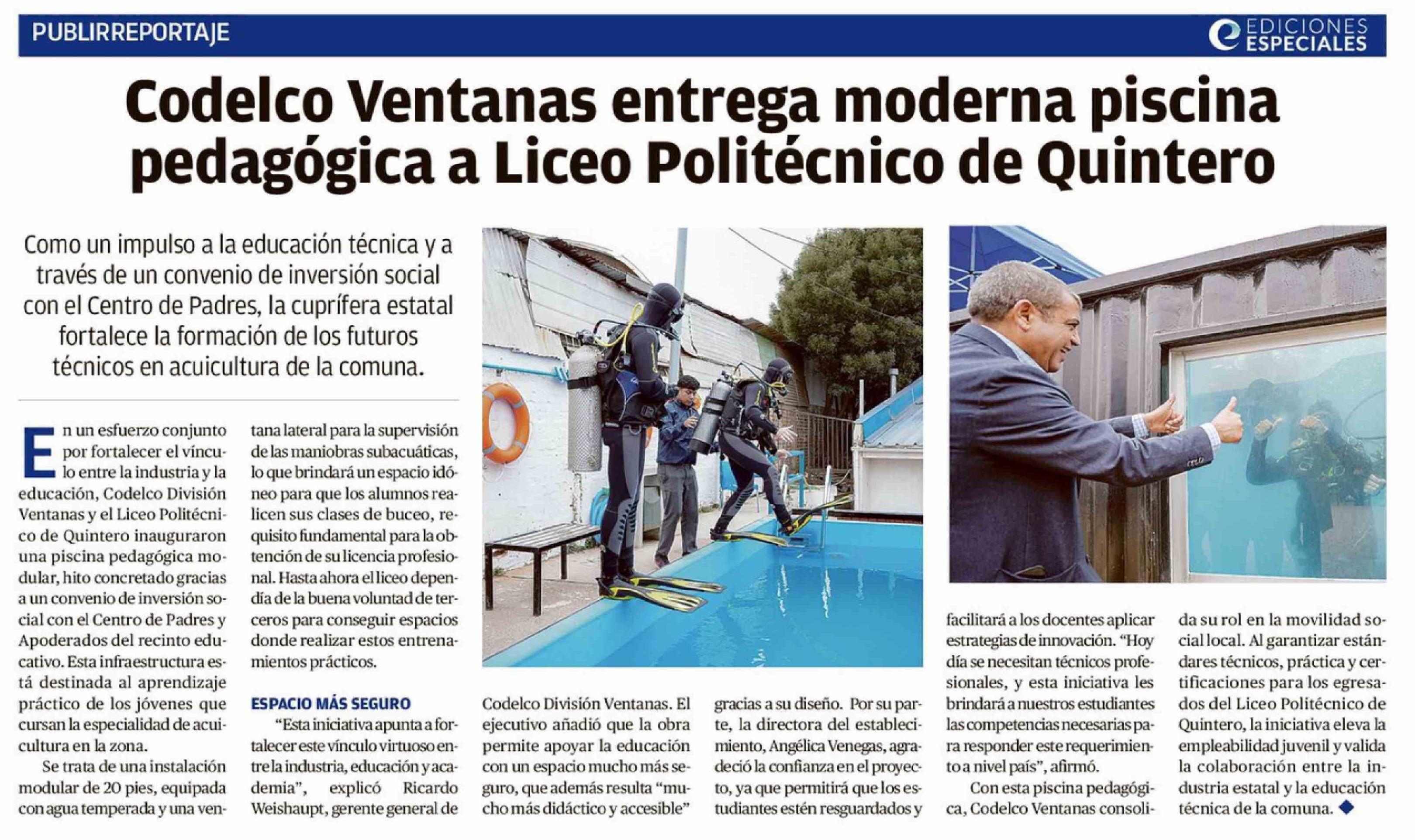 Título: Codelco Ventanas entrega moderna piscina pedagógica a Liceo Politécnico de Quintero