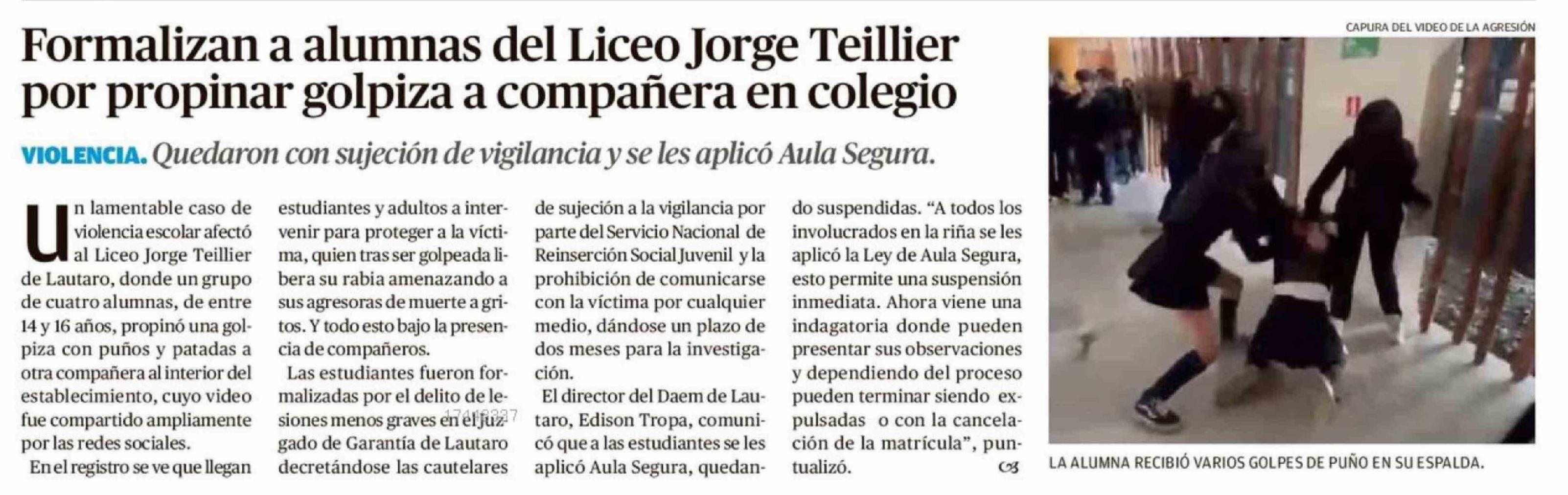 Título: Formalizan a alumnas del Liceo Jorge Teillier por propinar golpiza a compañera en colegio