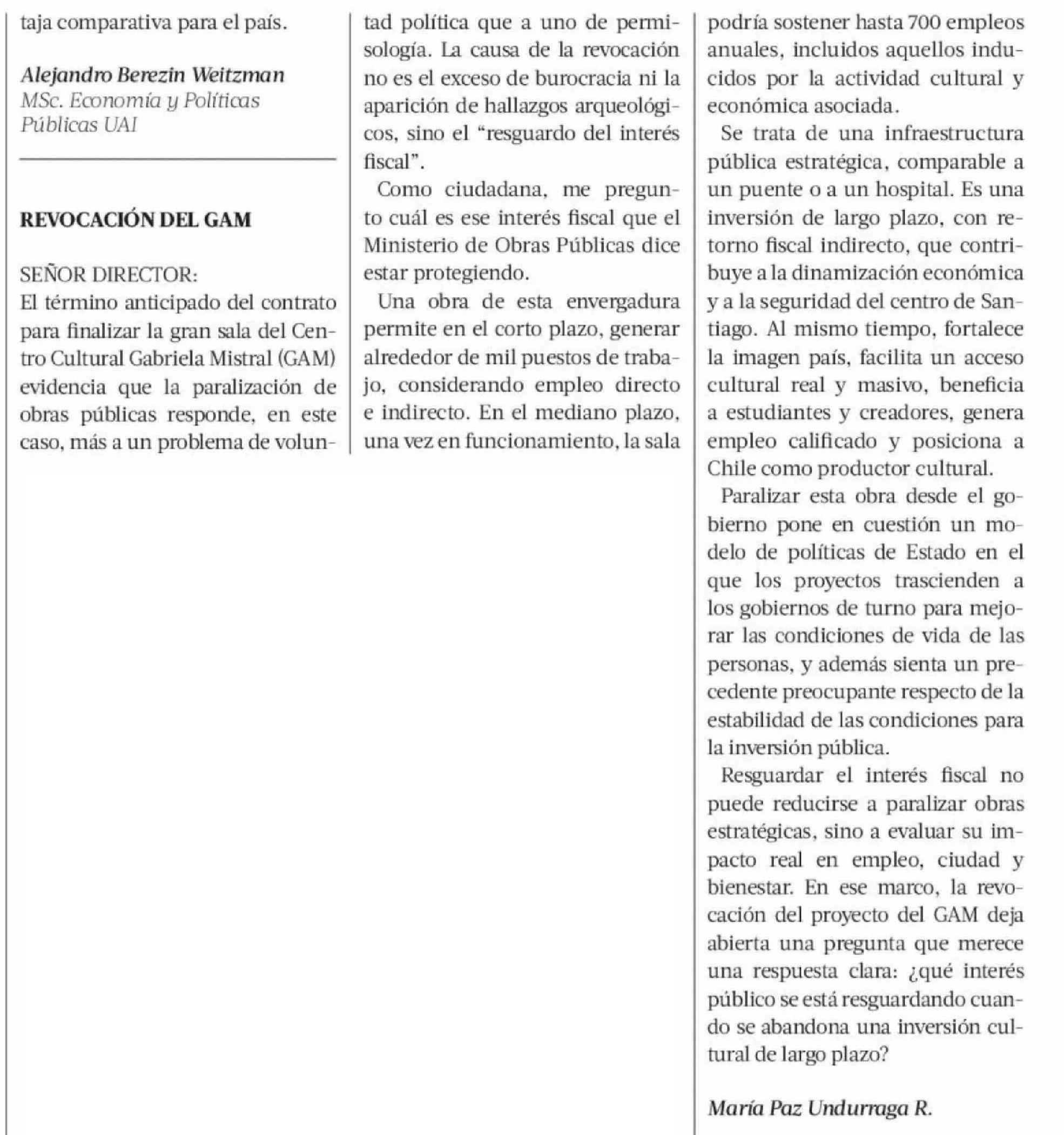 CARTAS: REVOCACIÓN DEL GAM 19-04-2026 La Tercera |