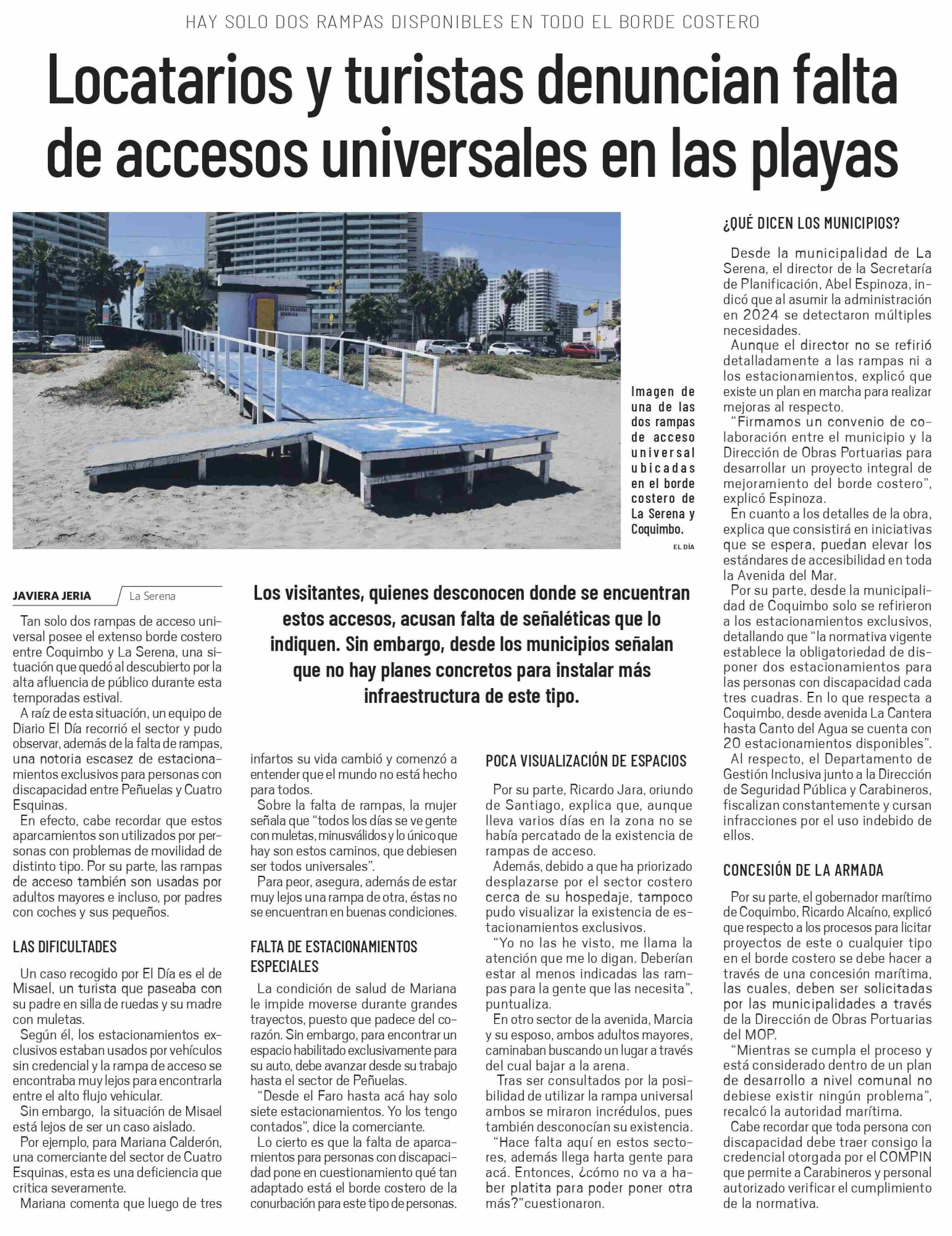 Locatarios y turistas denuncian falta de accesos universales en las playas 10-01-2026 El Día |