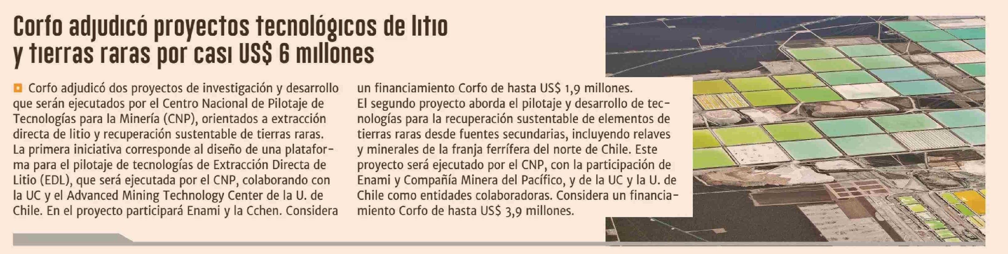 Título: Corfo adjudicó proyectos tecnológicos de litio y tierras raras por casi US$ 6 millones
