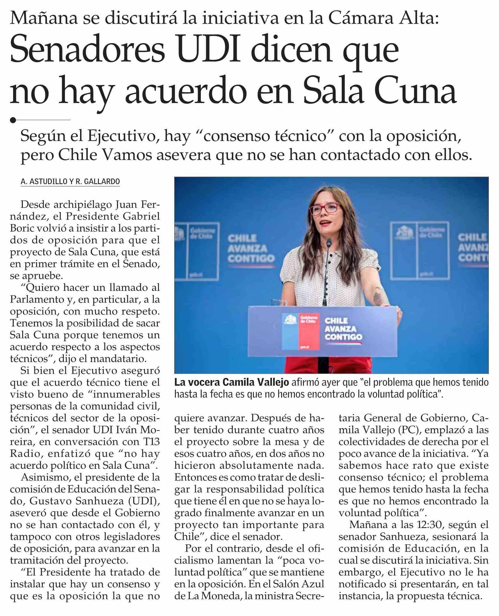 Título: Senadores UDI dicen que no hay acuerdo en Sala Cuna