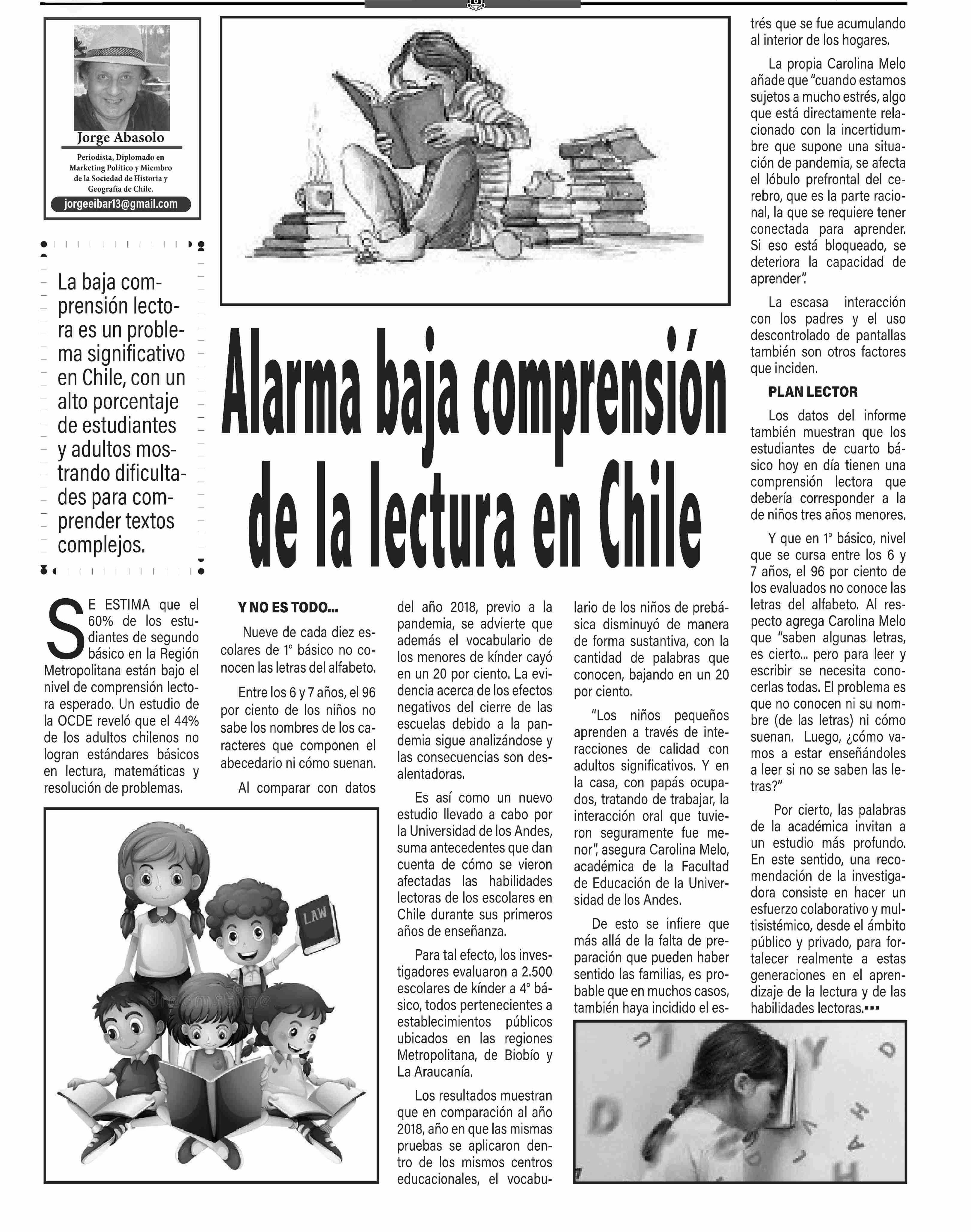 | Título: | Alarma baja comprensión de la lectura en Chile |