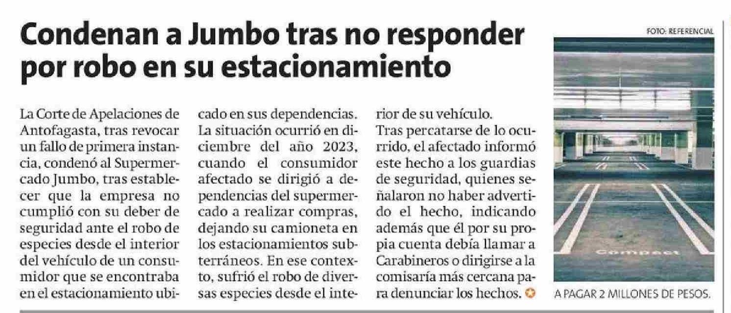 Título: Condenan a Jumbo tras no responder por robo en su estacionamiento