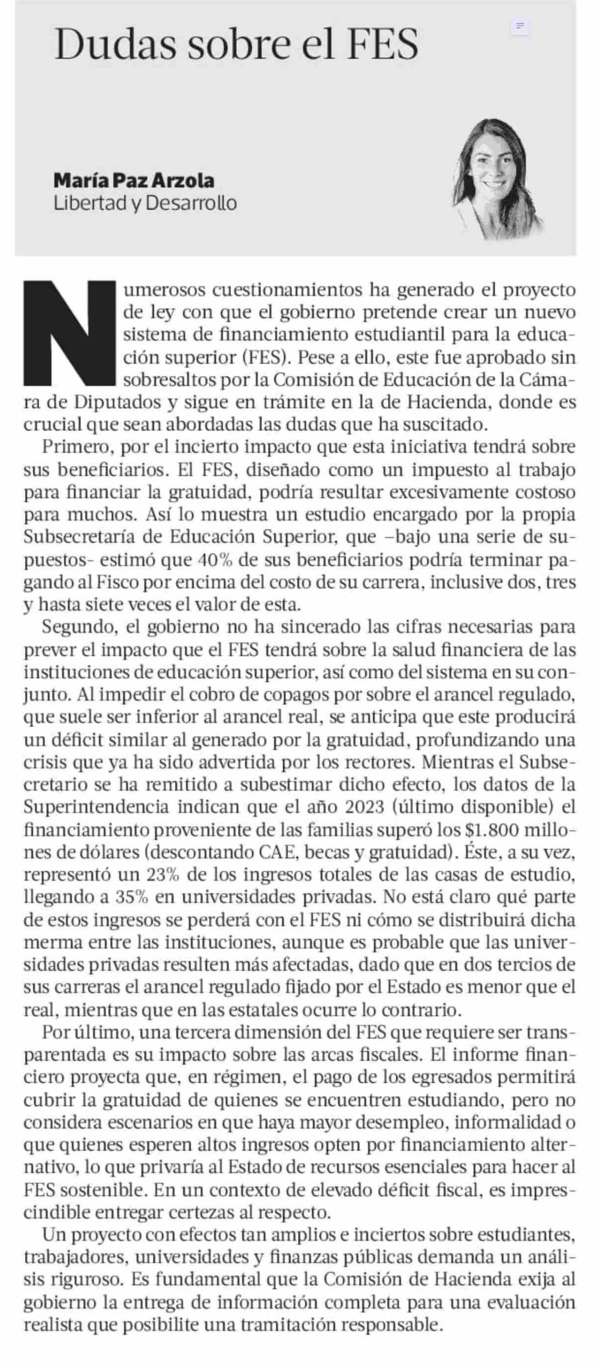 Columnas de Opinión: Dudas sobre el FES 23-06-2025 La Tercera |