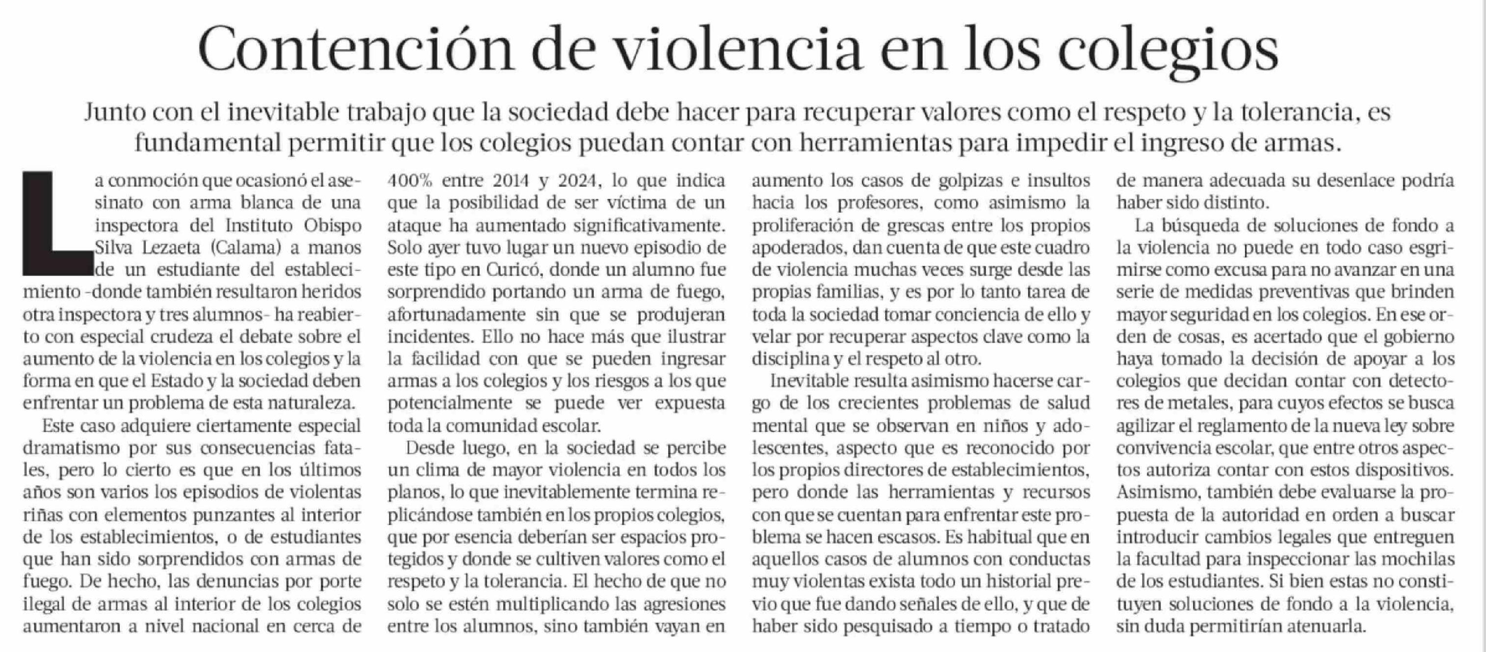Editorial: Contención de violencia en los colegios
