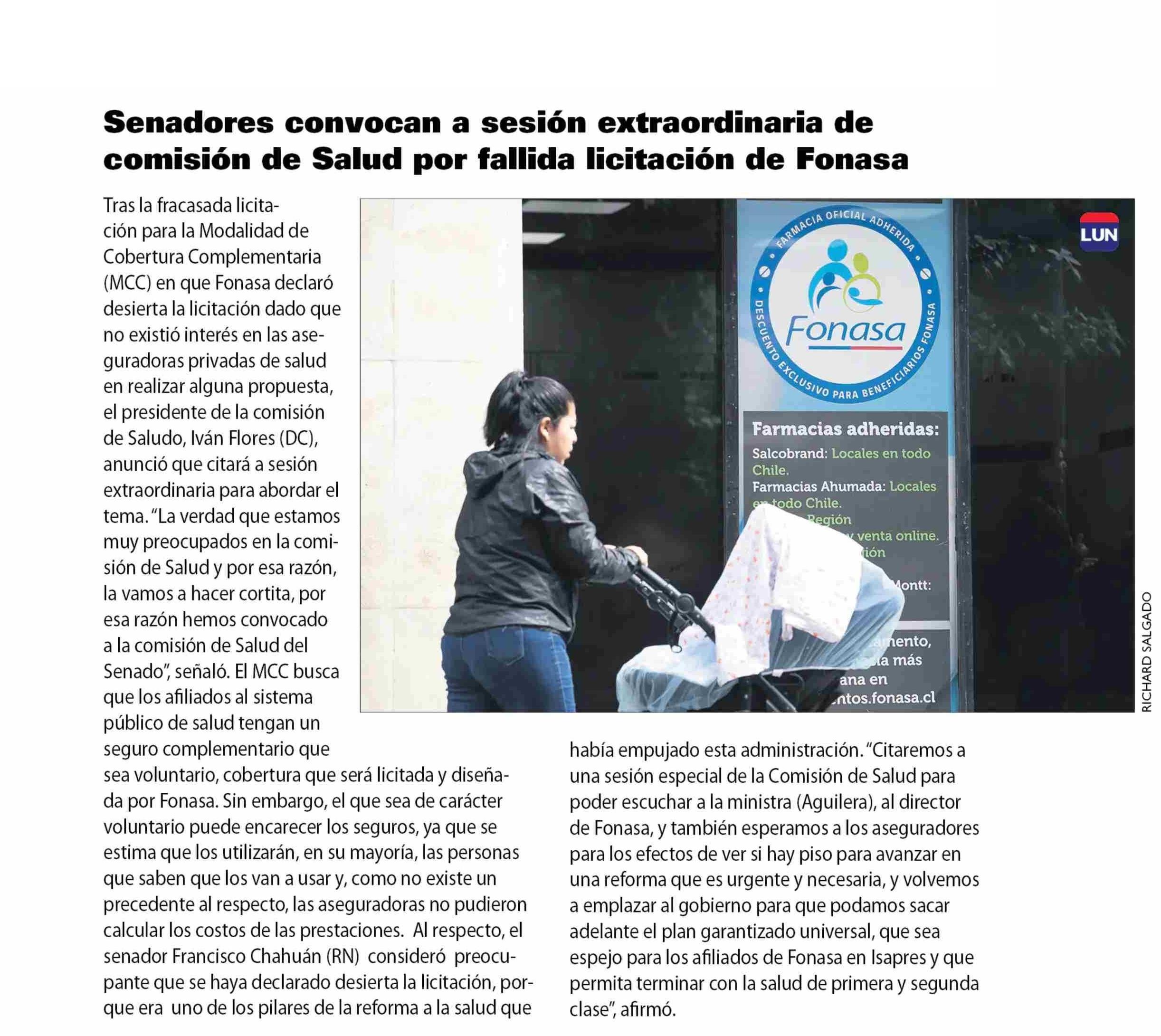 | Título: | Senadores convocan a sesión extraordinaria de comisión de Salud por fallida licitación de Fonasa |