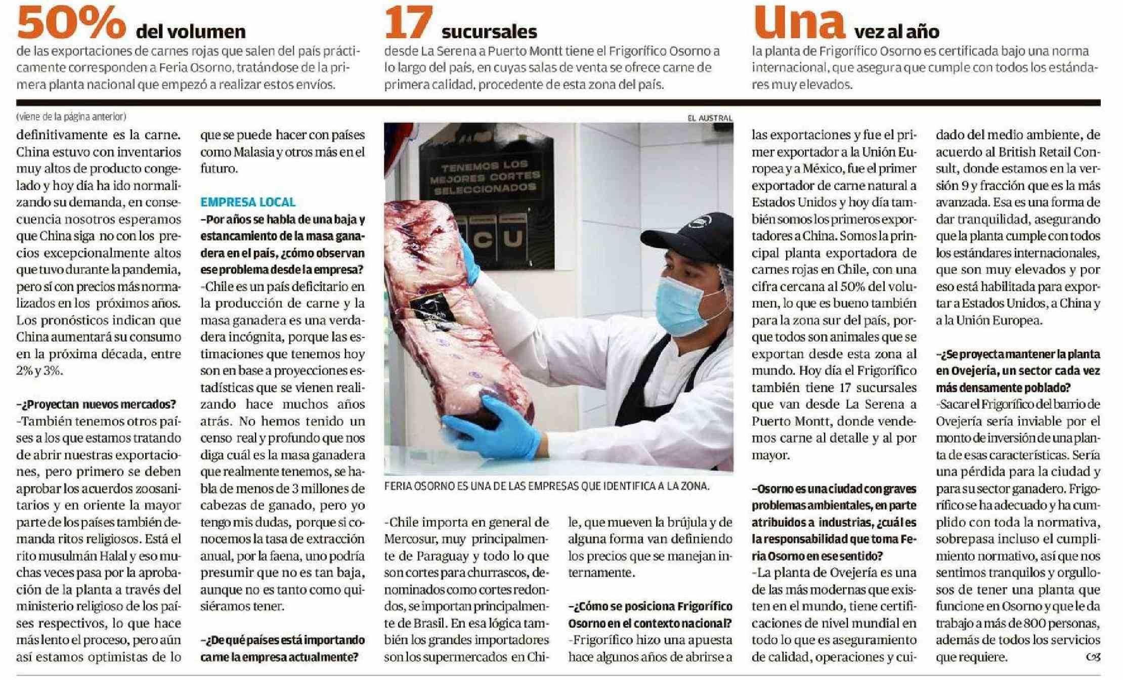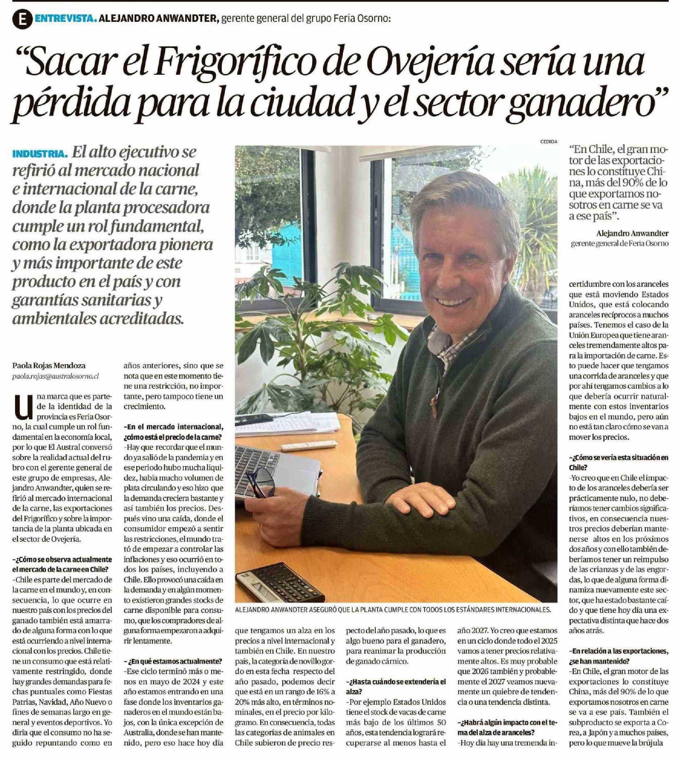“Sacar el Frigorífico de Ovejería sería una pérdida para la ciudad y el sector ganadero” 03-04-2025 El Austral de Osorno |
