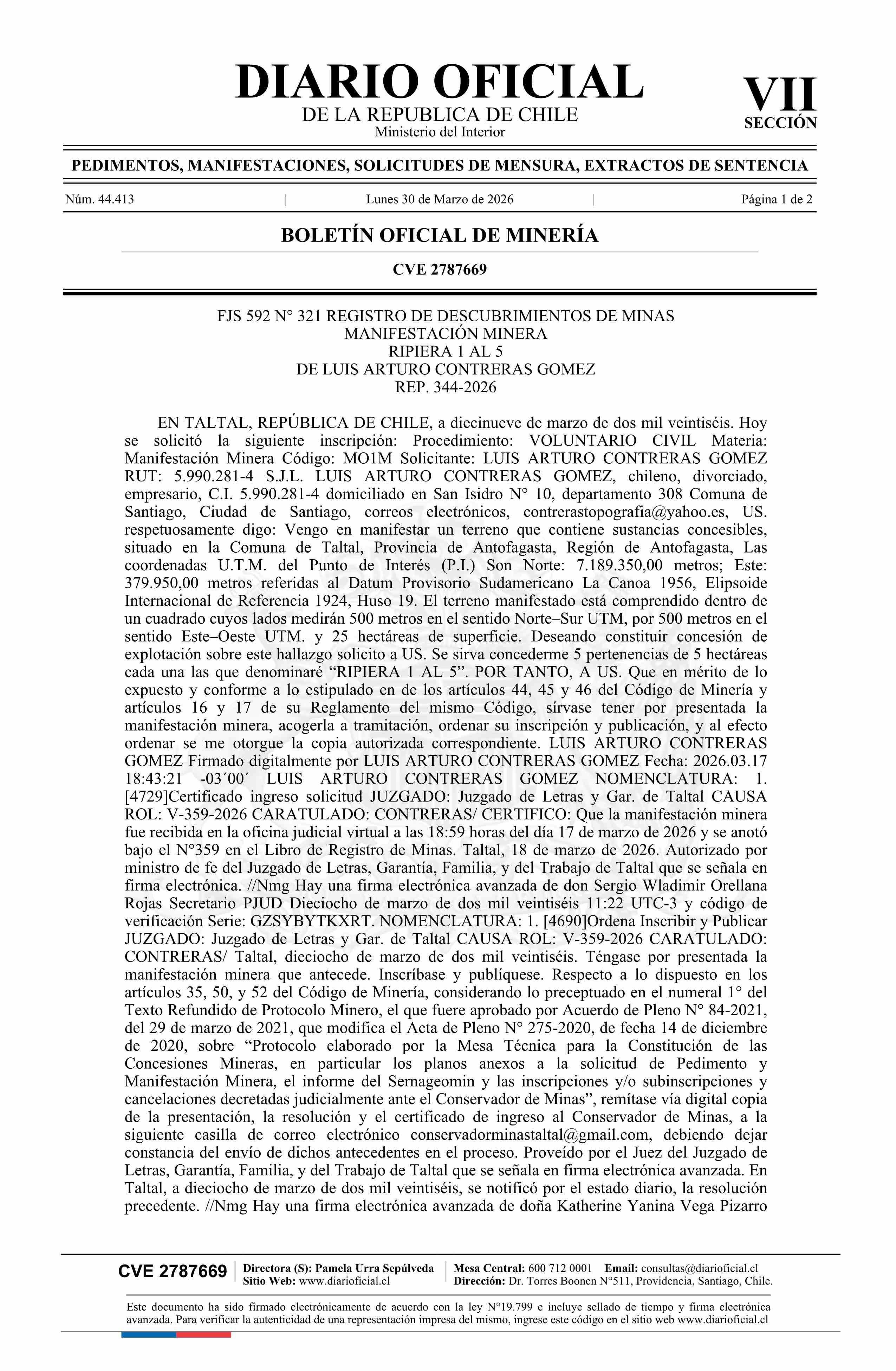 30-03-2026 DIARIO OFICIAL CHILE - BOLETÍN OFICIAL DE MINERÍA
