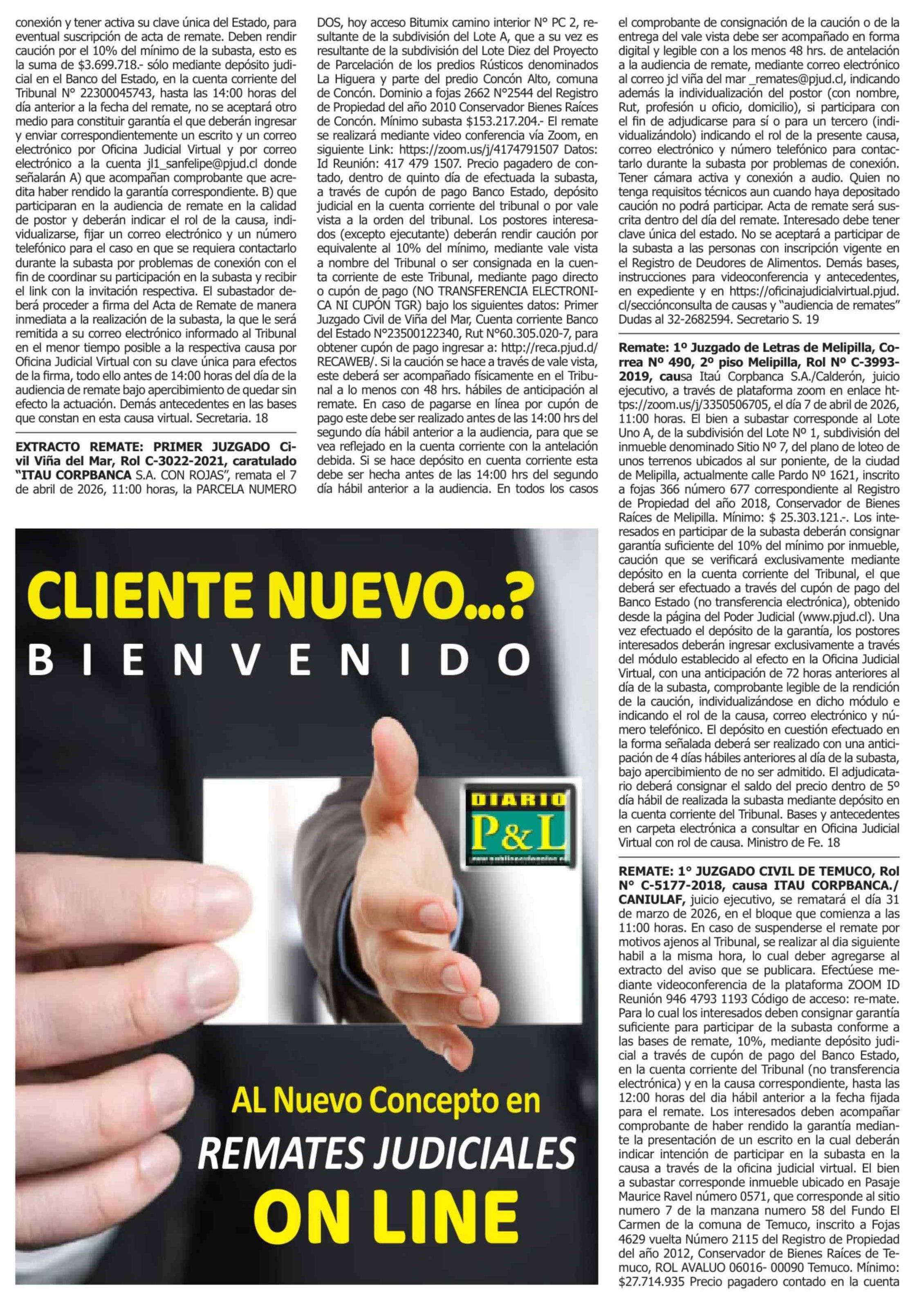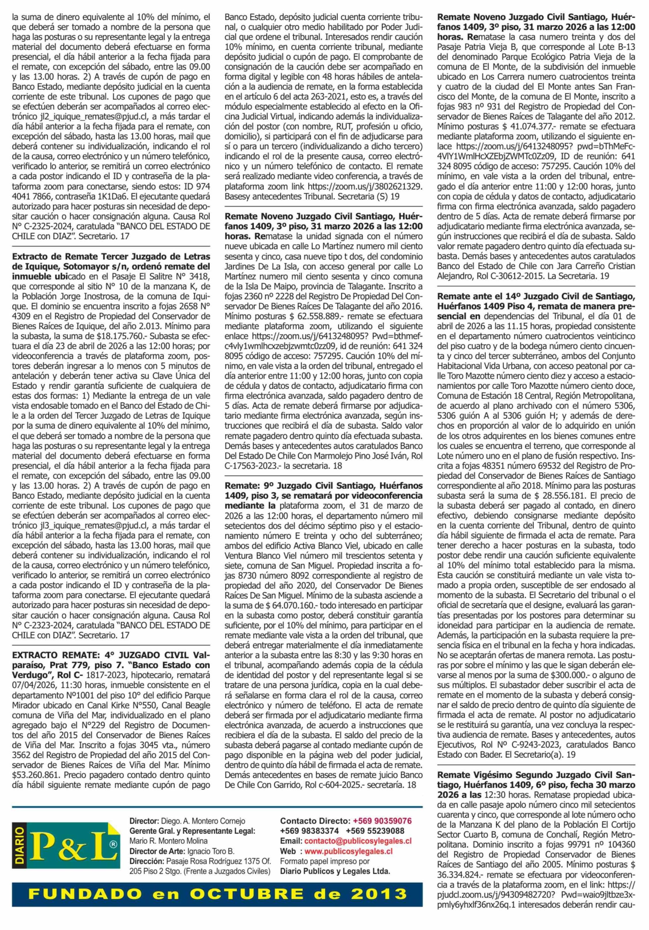 Remates: COMPENDIO REMATES de PROPIEDADES (NACIONAL) 17-03-2026 P&L Públicos y Legales |