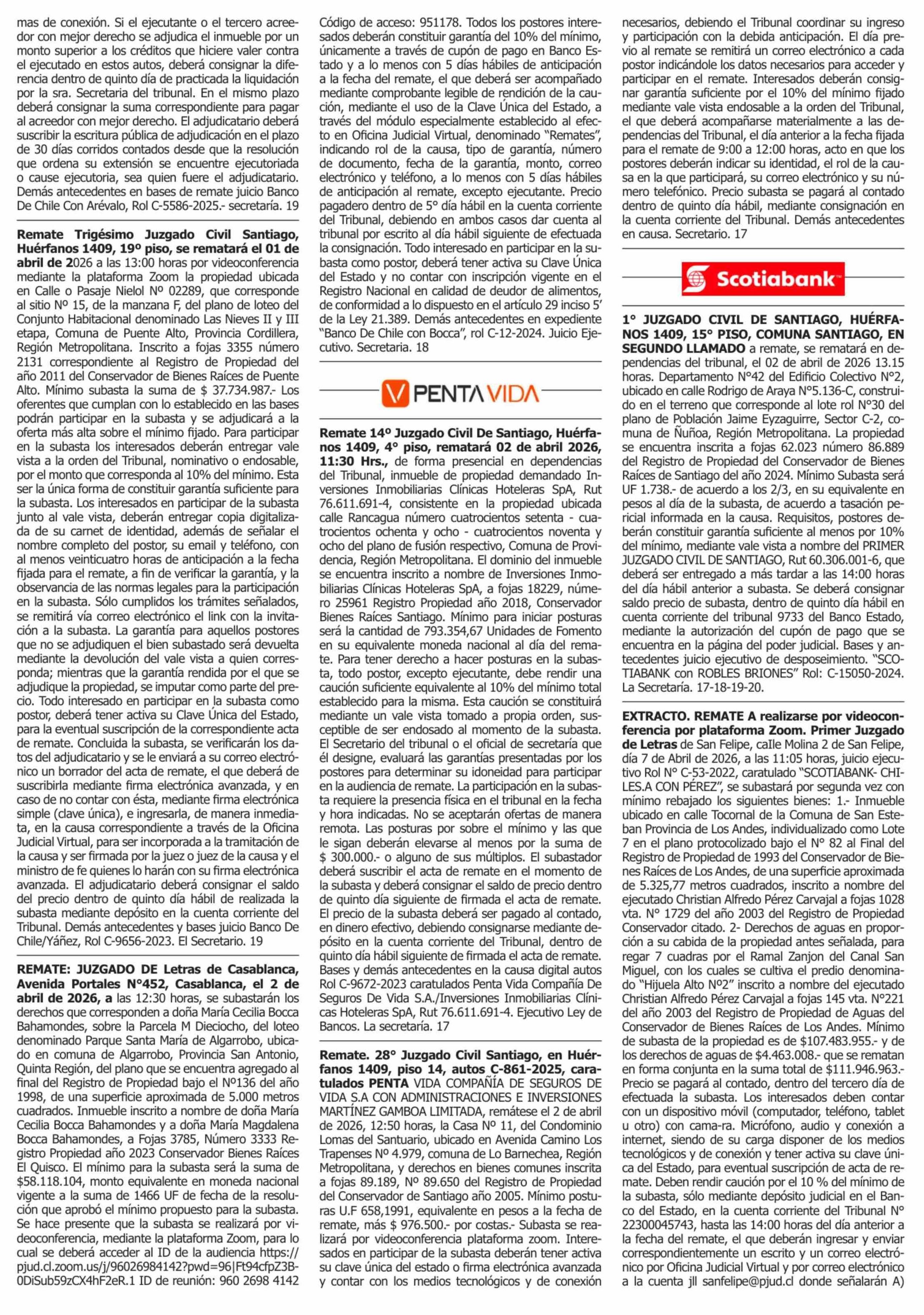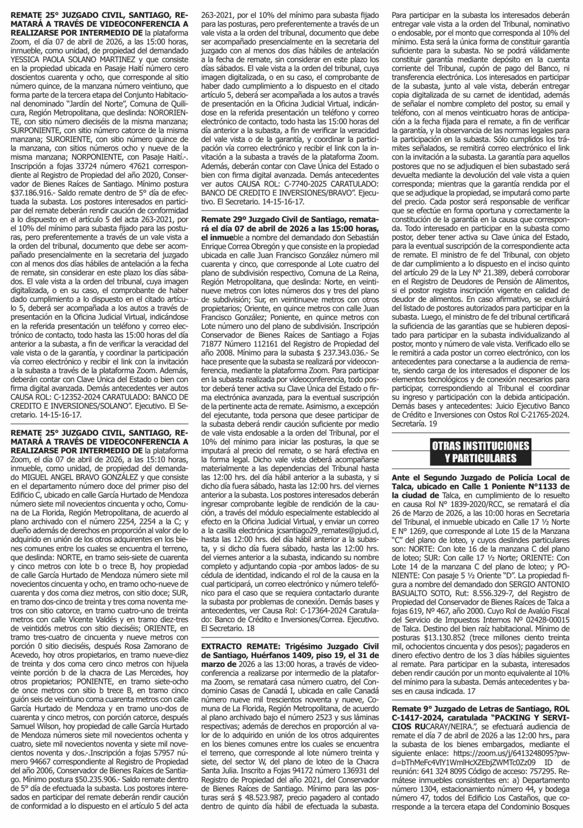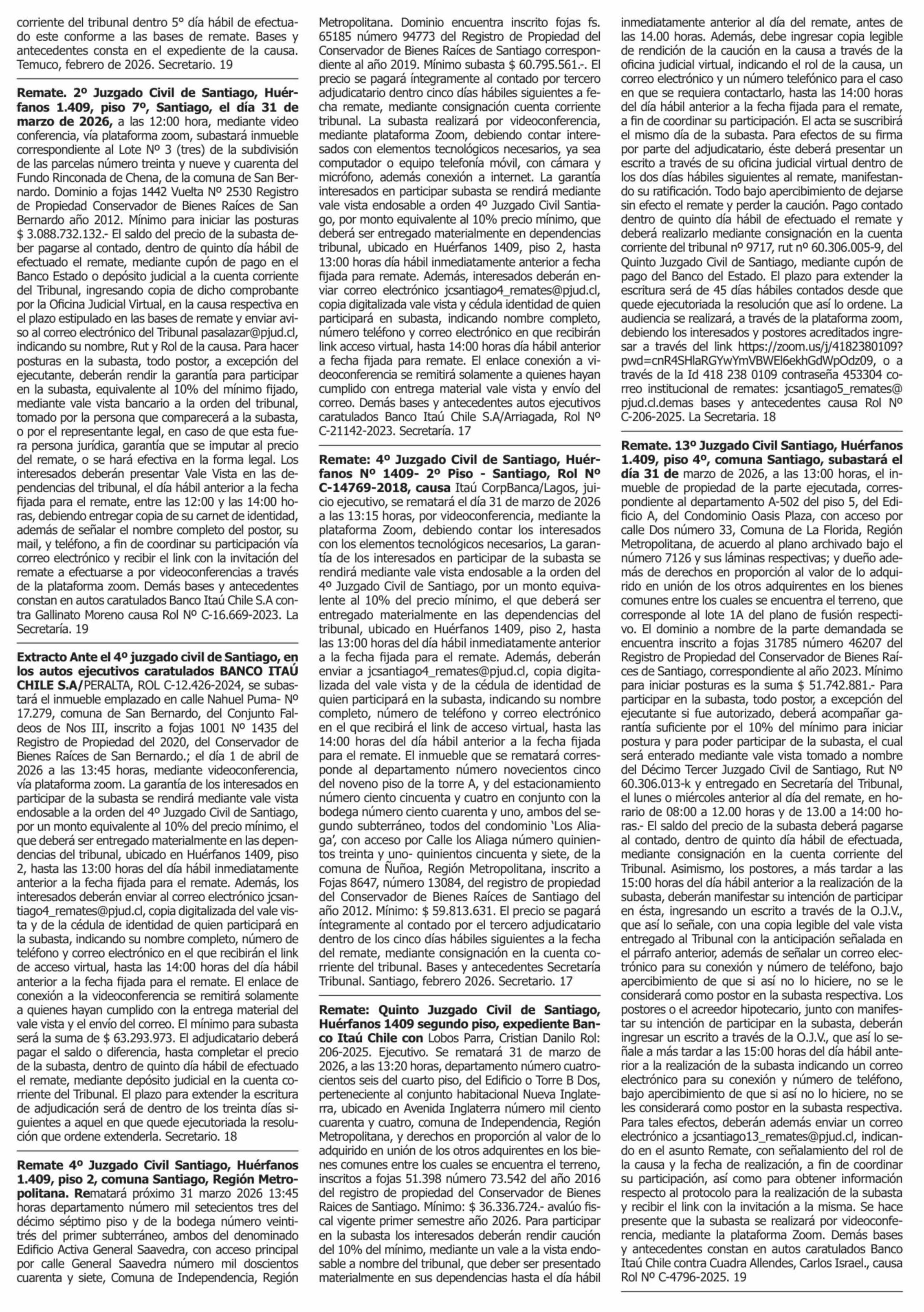| Fecha: | 17-03-2026 | Sector: | Remates | Región: | Región Metropolitana de Santiago |