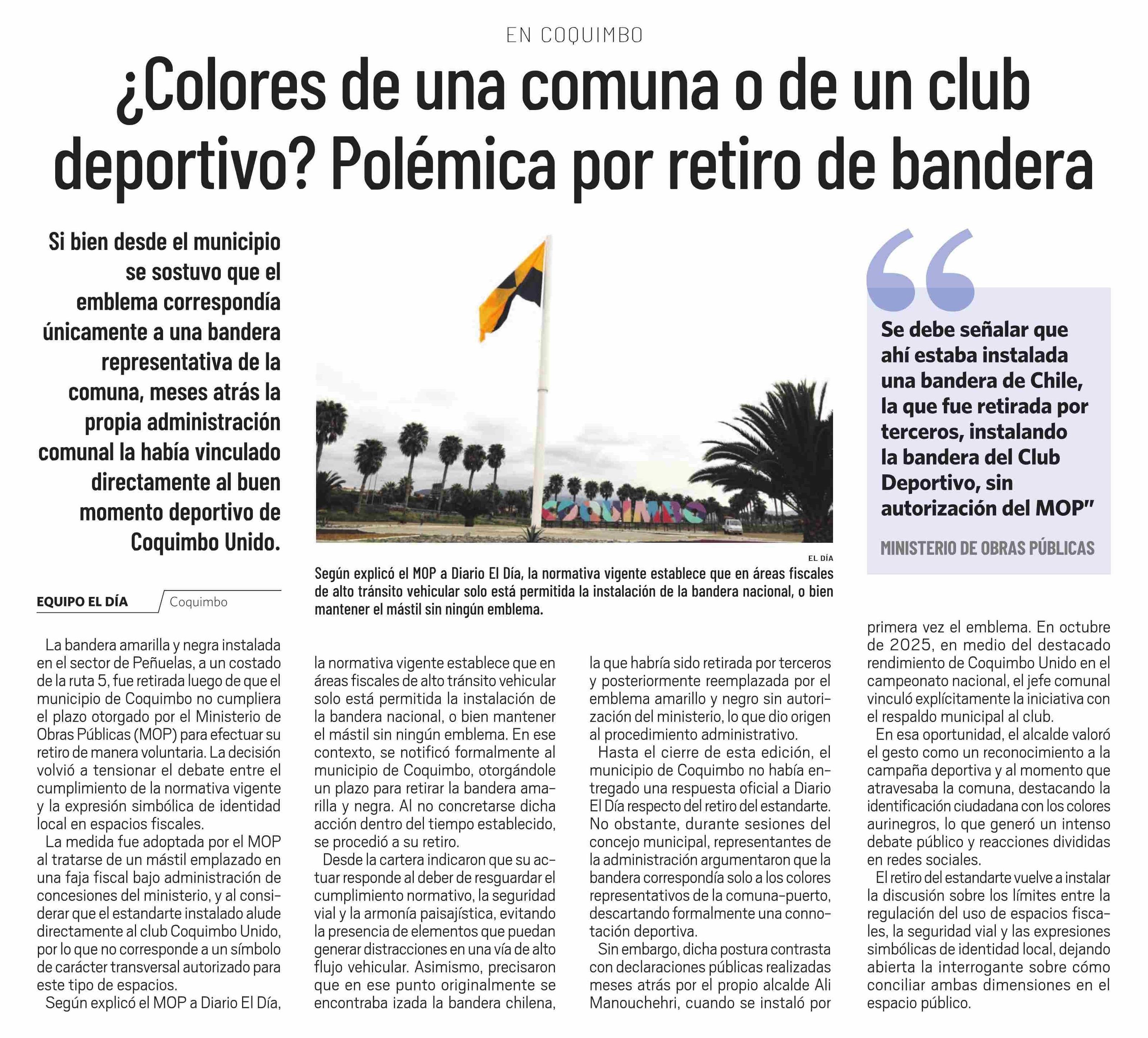 Título: ¿Colores de una comuna o de un club deportivo? Polémica por retiro de bandera