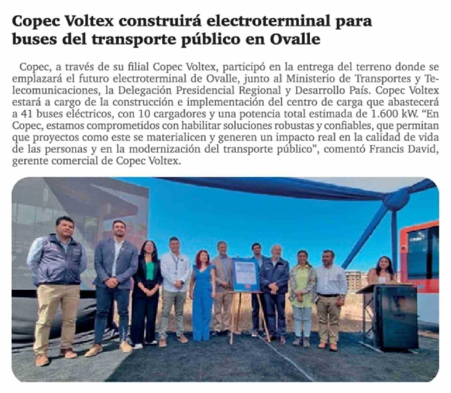 | Título: | Copec Voltex construirá electroterminal para buses del transporte público en Ovalle |