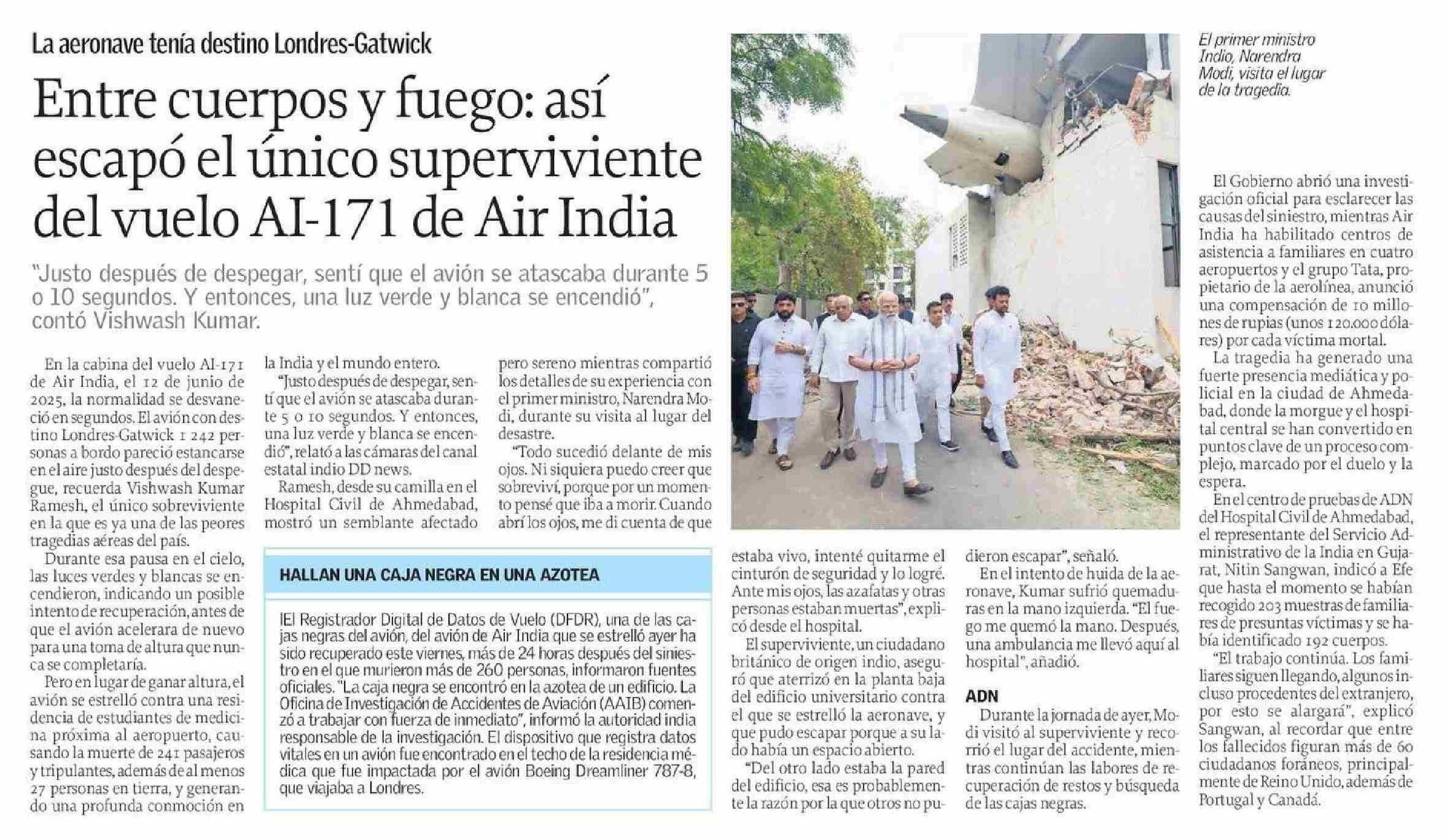 Entre cuerpos y fuego: así escapó el único superviviente del vuelo AI-171 de Air India 14-06-2025 El Sur |