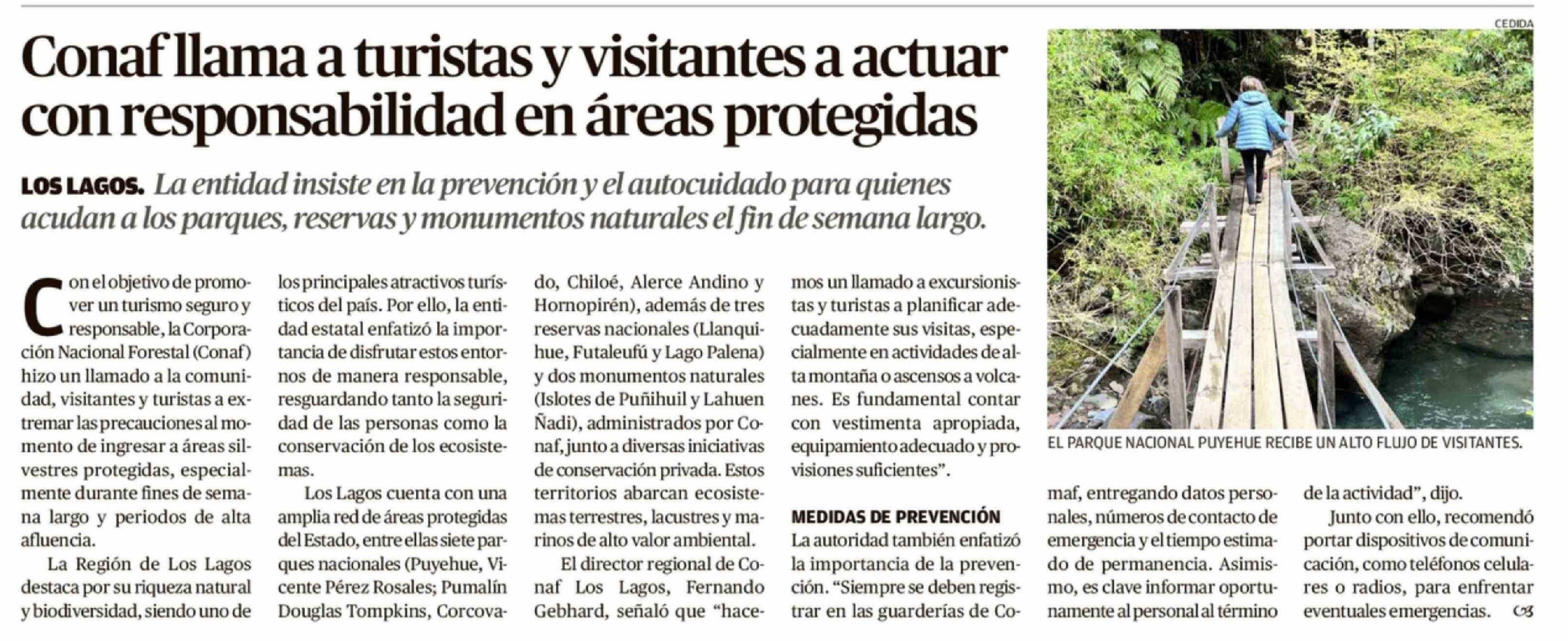Título: Conaf llama a turistas y visitantes a actuar con responsabilidad en áreas protegidas
