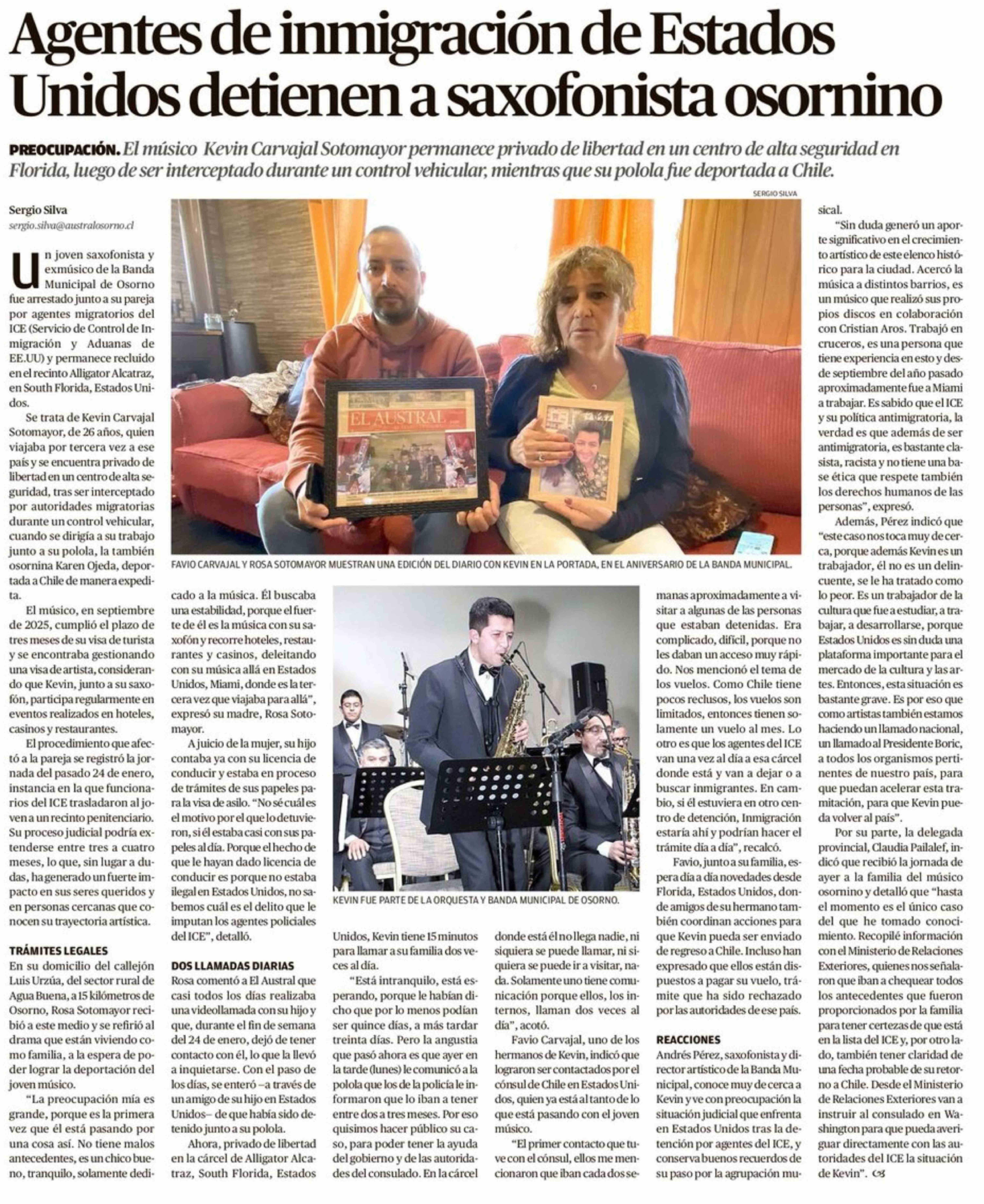 Título: Agentes de inmigración de Estados Unidos detienen a saxofonista osornino