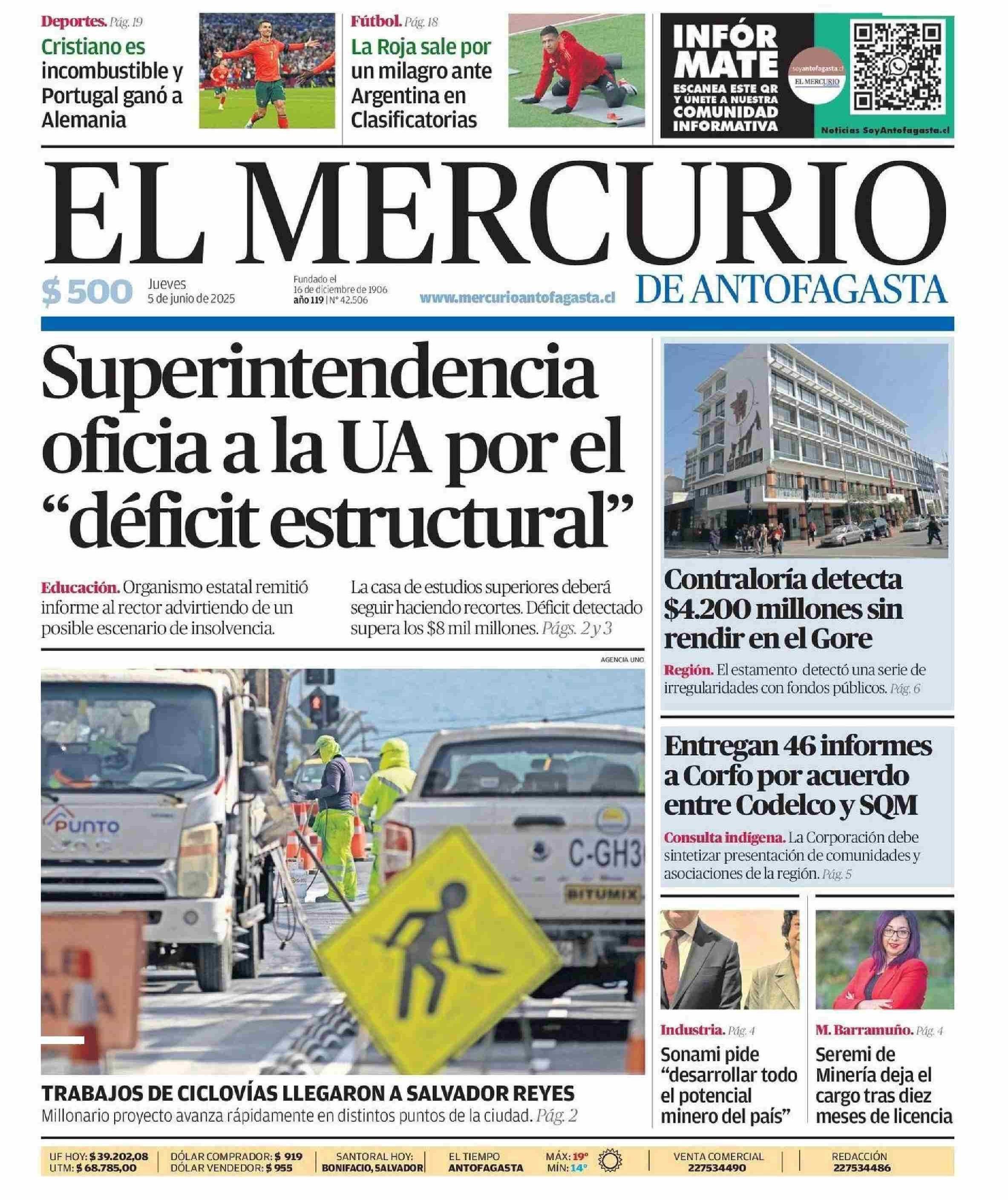 | Fecha: | 05-06-2025 | Sector: | Portada | Región: | Región de Antofagasta |