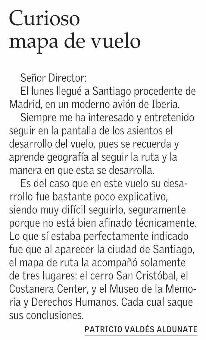 CARTAS: Curioso mapa de vuelo 18-06-2025 El Mercurio |