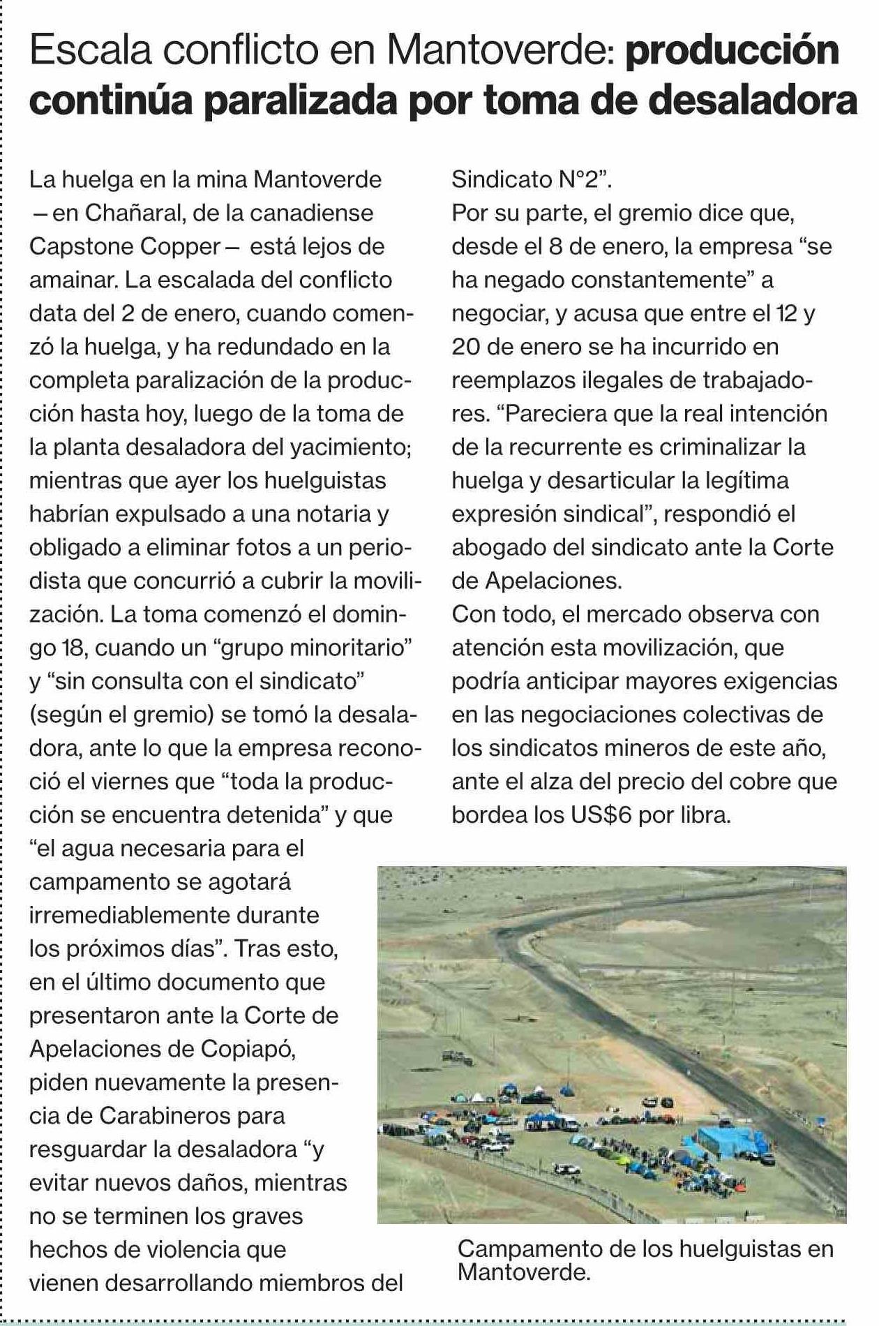 Título: Escala conflicto en Mantoverde: producción continúa paralizada por toma de desaladora